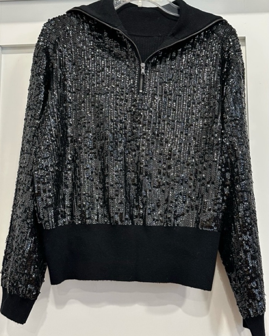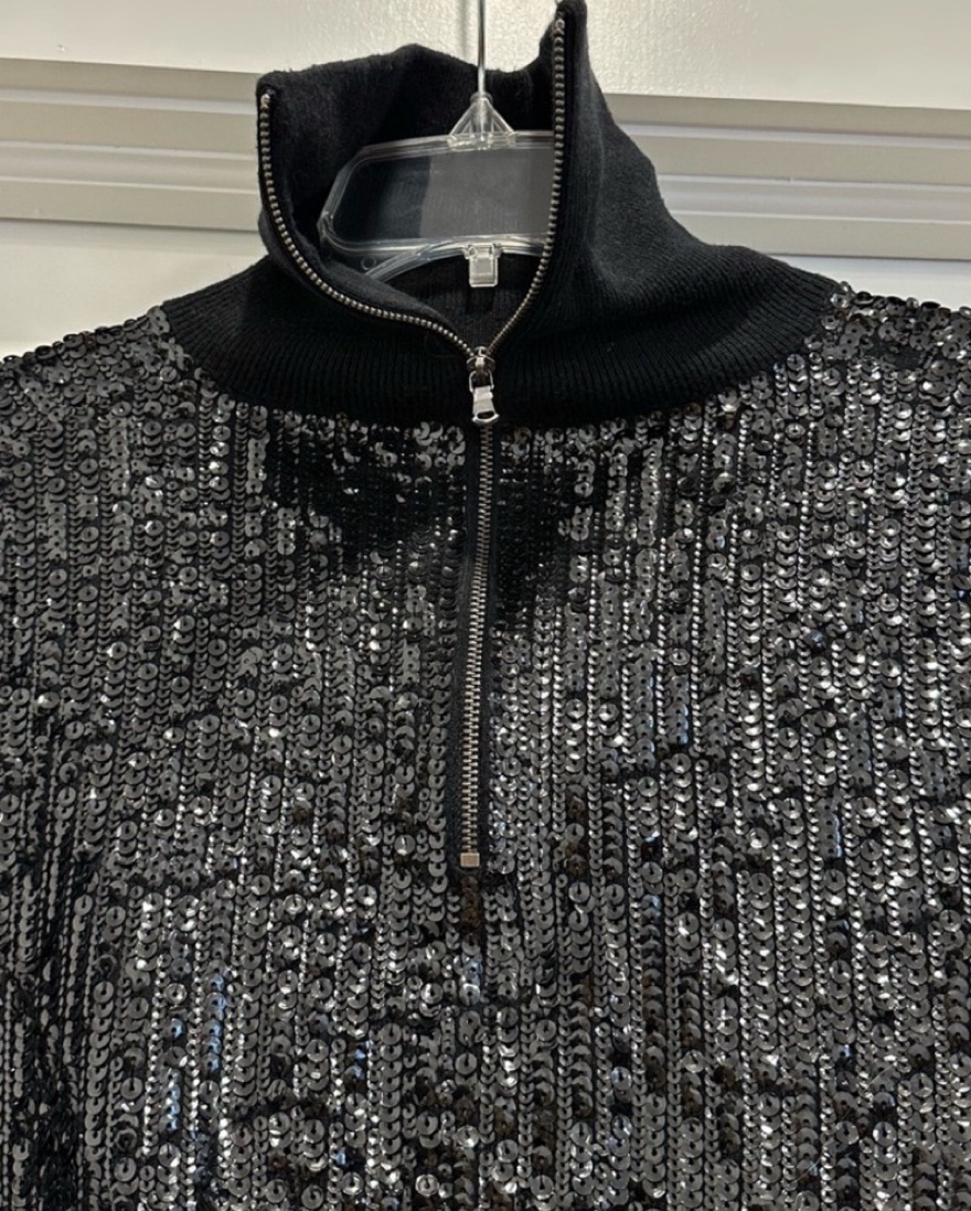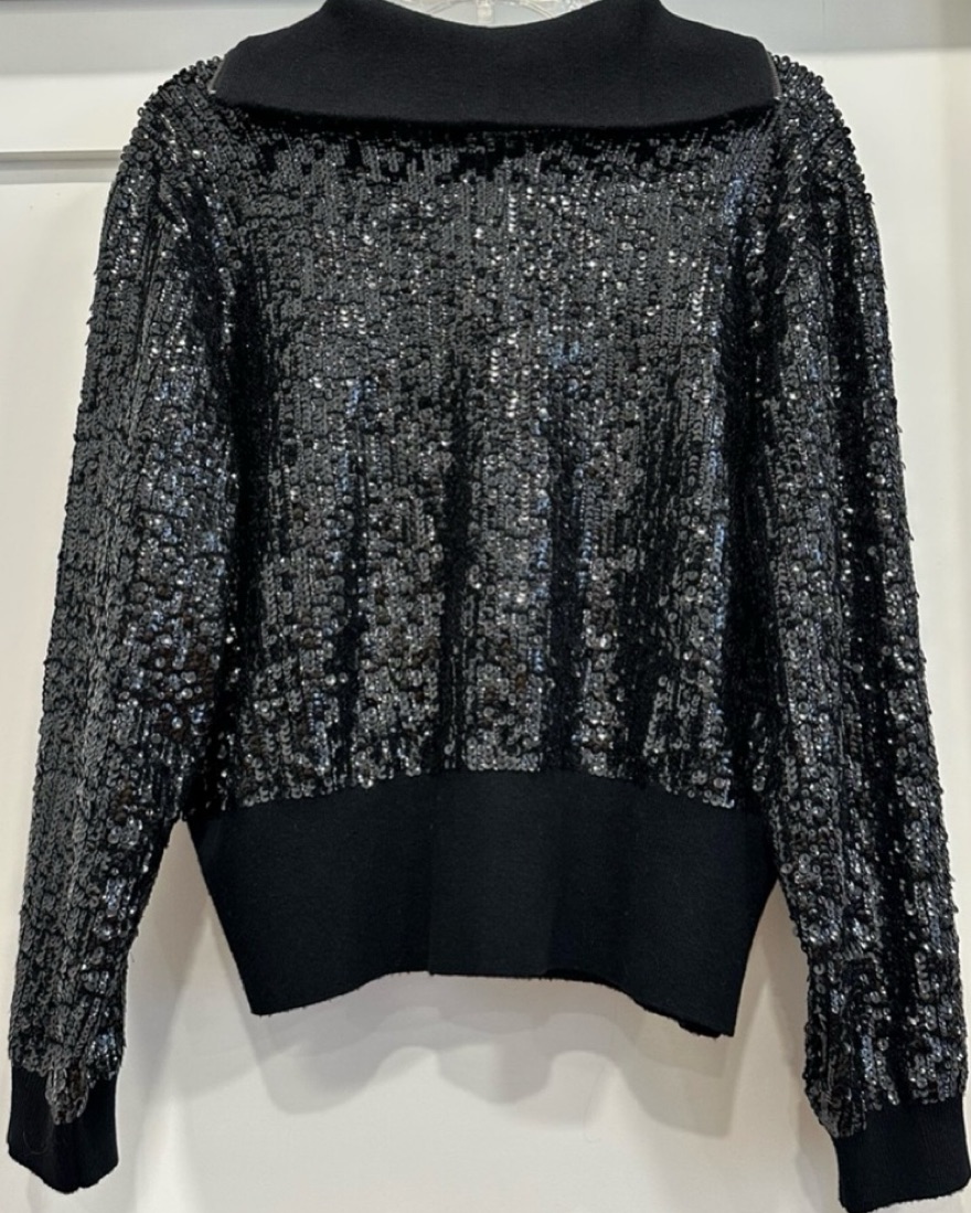 We're throwing a sweater party...and this sparkly, sequined style is first on the guest list. More reasons to celebrate it: the cool collar that can be worn lots of different ways.