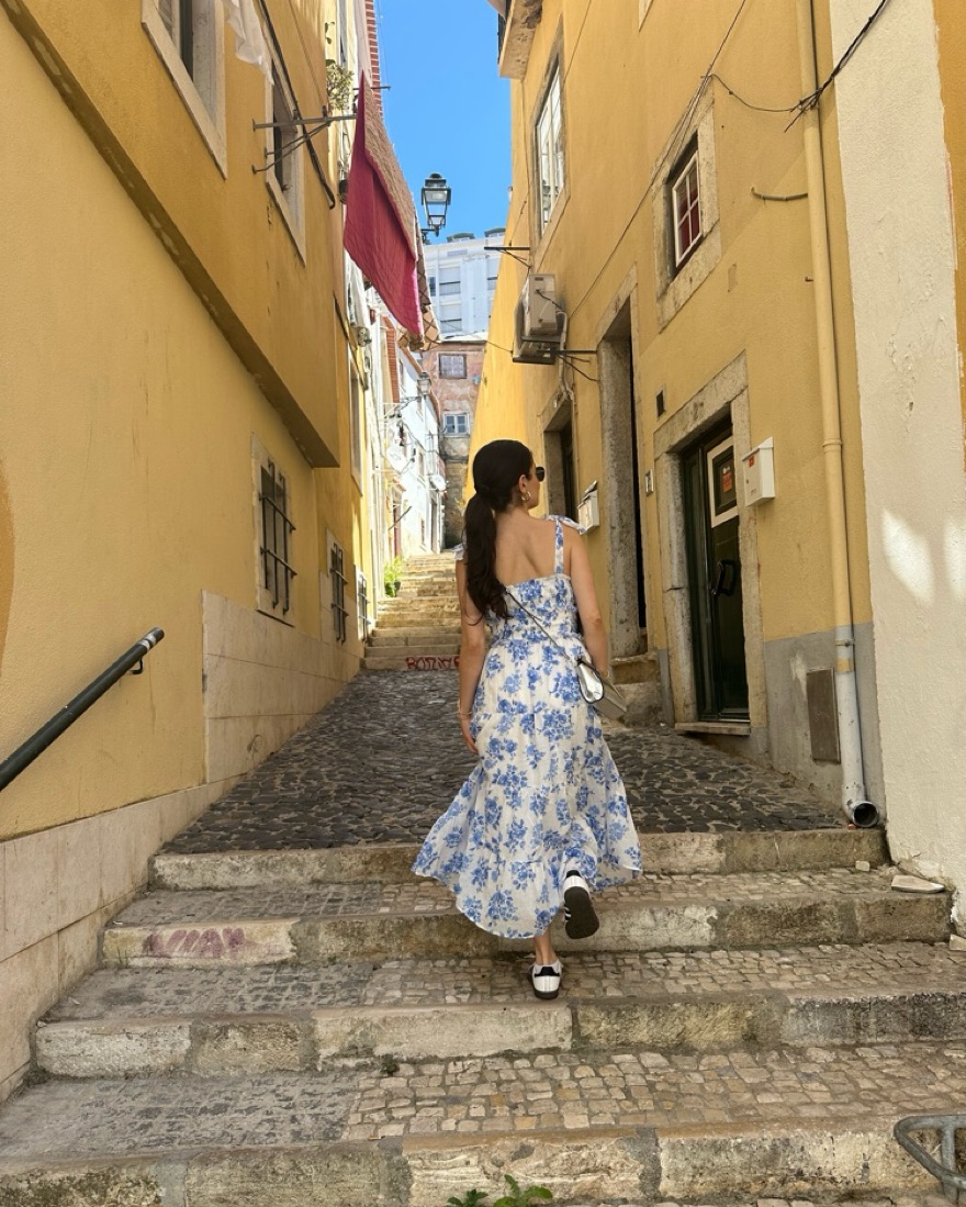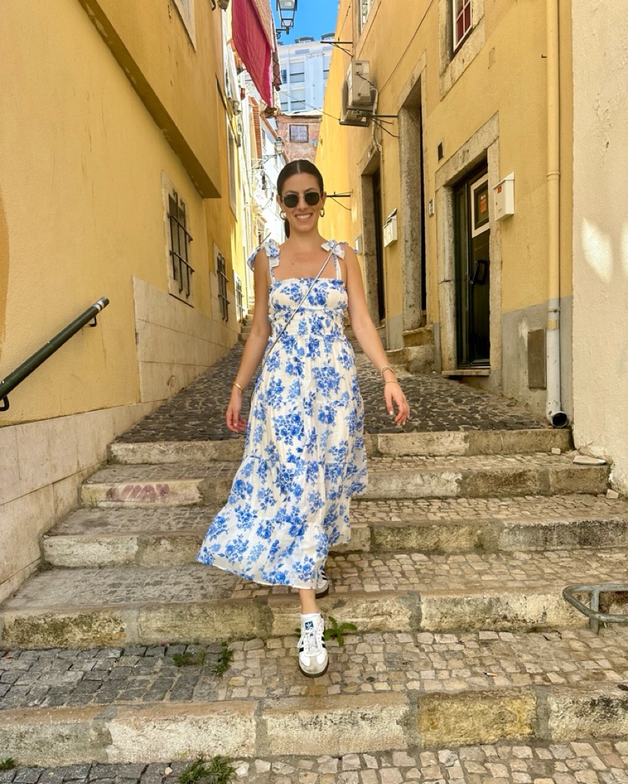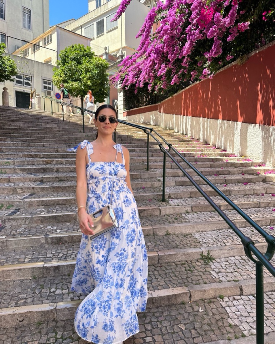 Floral blue and white maxi dress. Brand is Aqua from Bloomingdales. Super comfortable and worn only twice on recent vacation.