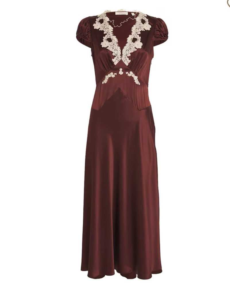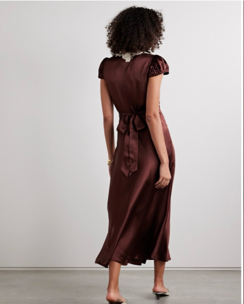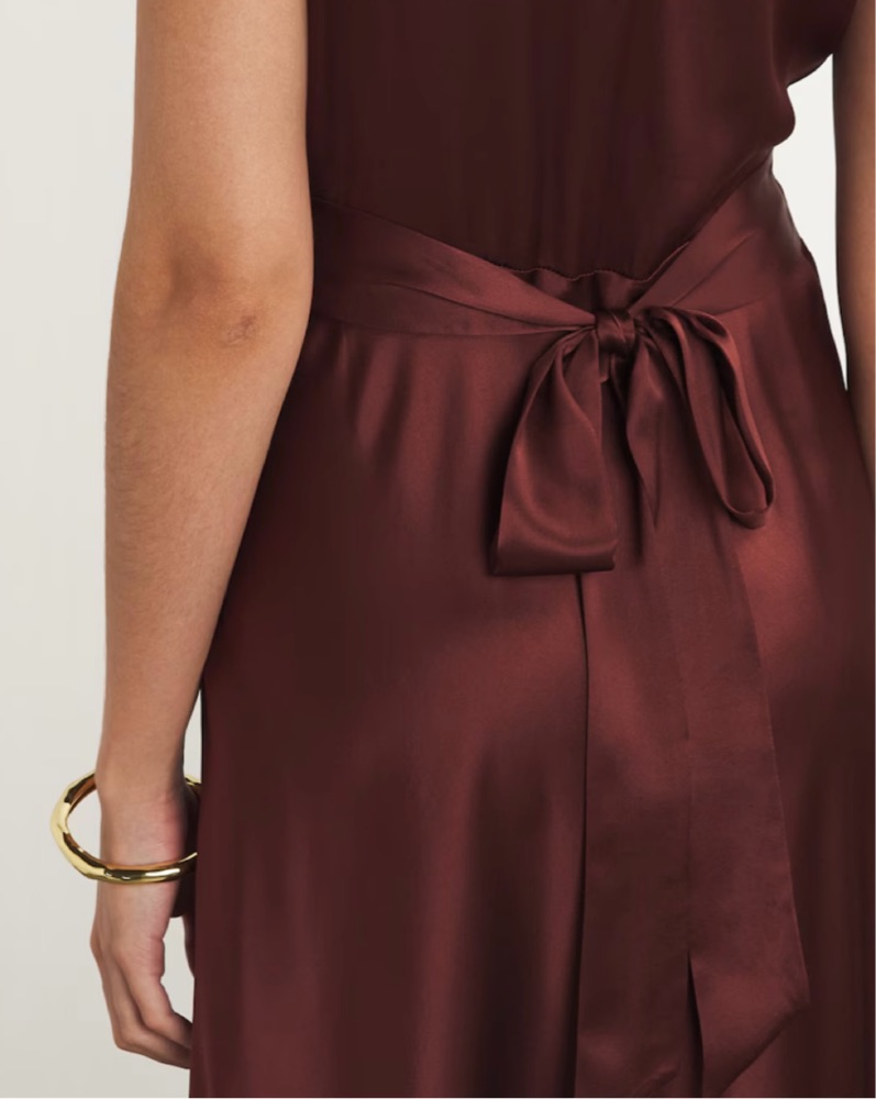 Burgundy doen dress perfect for a fall/ winter events or special occasions! Hits at a midi on me (5’7”) but would hit as a maxi on shorter girls! Tie back can held adjust to multiple sizes if you run smaller than a size S!