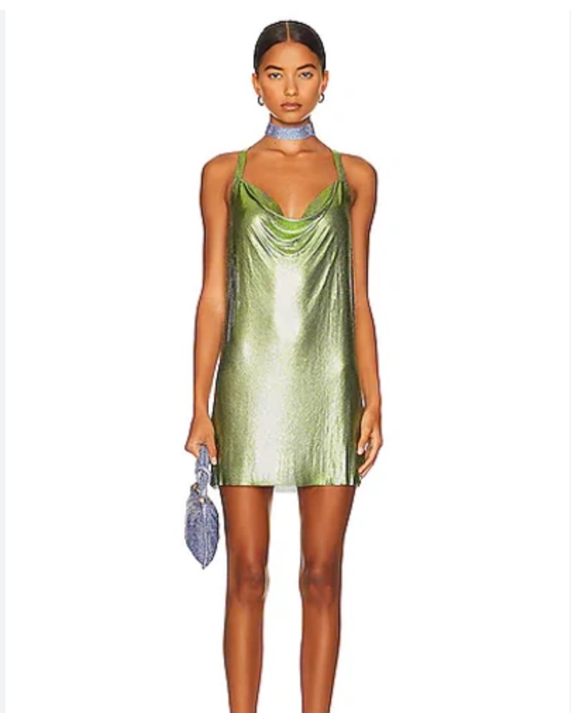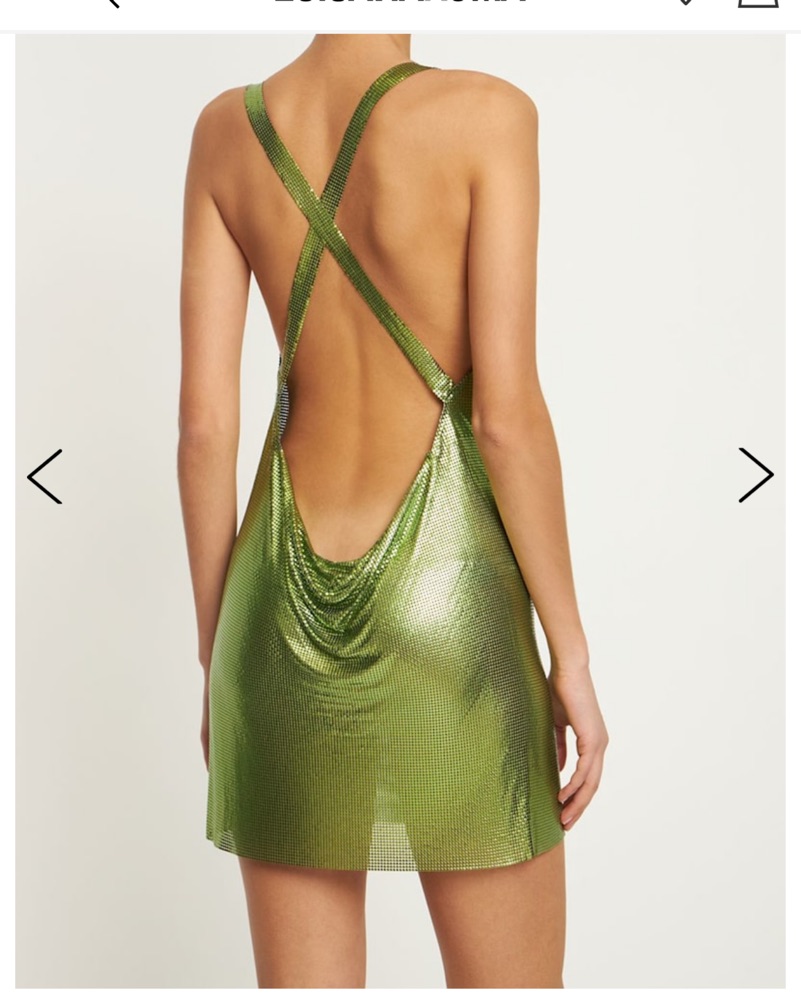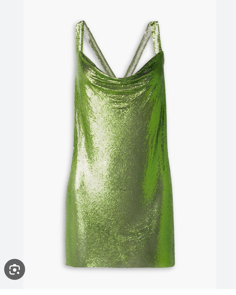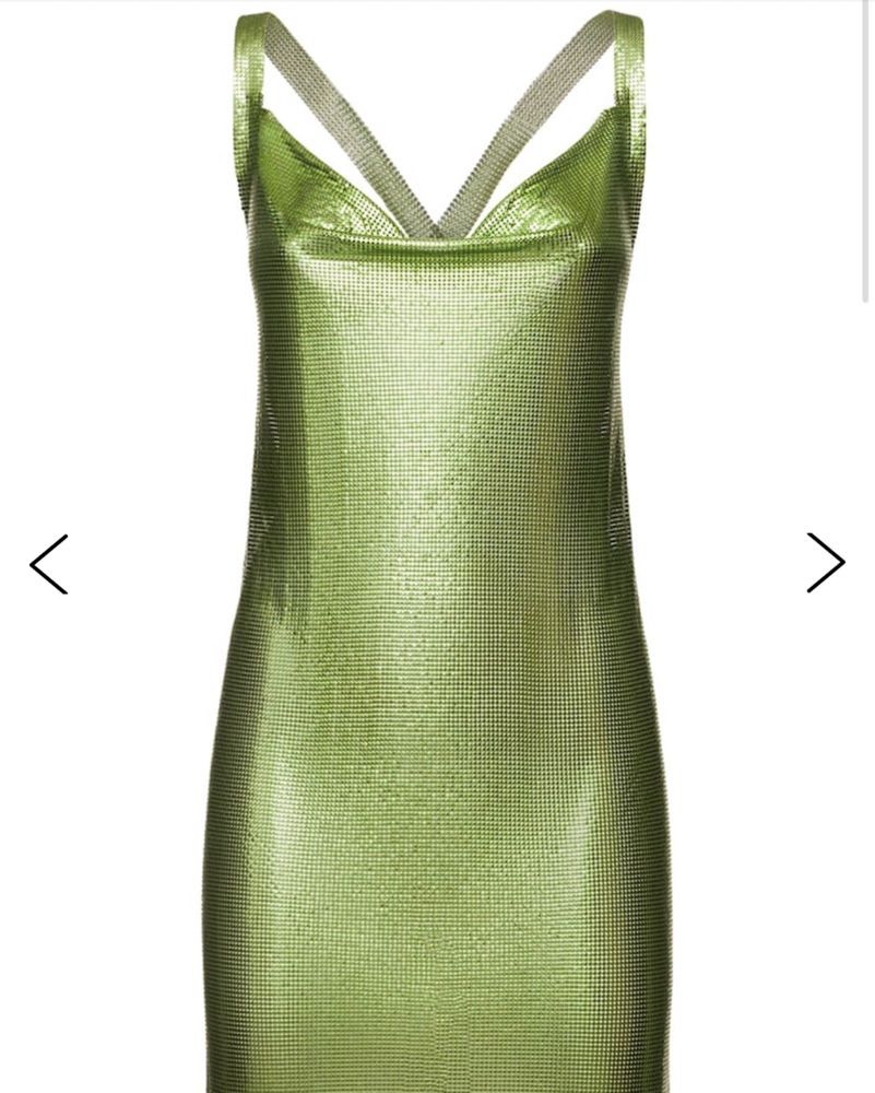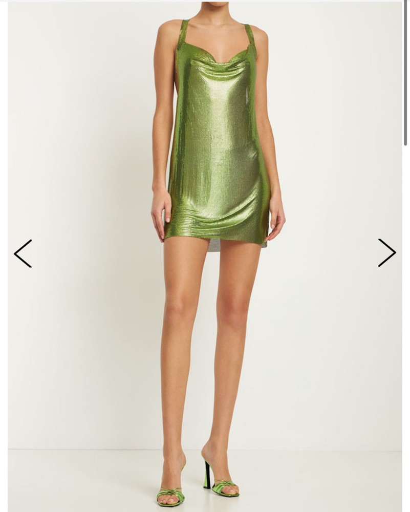 Fannie Schiavoni Hailey mesh mini dress made of green chainmail. Perfect for night out, NYE, Ibiza or Miami vibe. Very heavy material because of the high quality and extremely flattering! This is quite short so it’s definitely a mini!