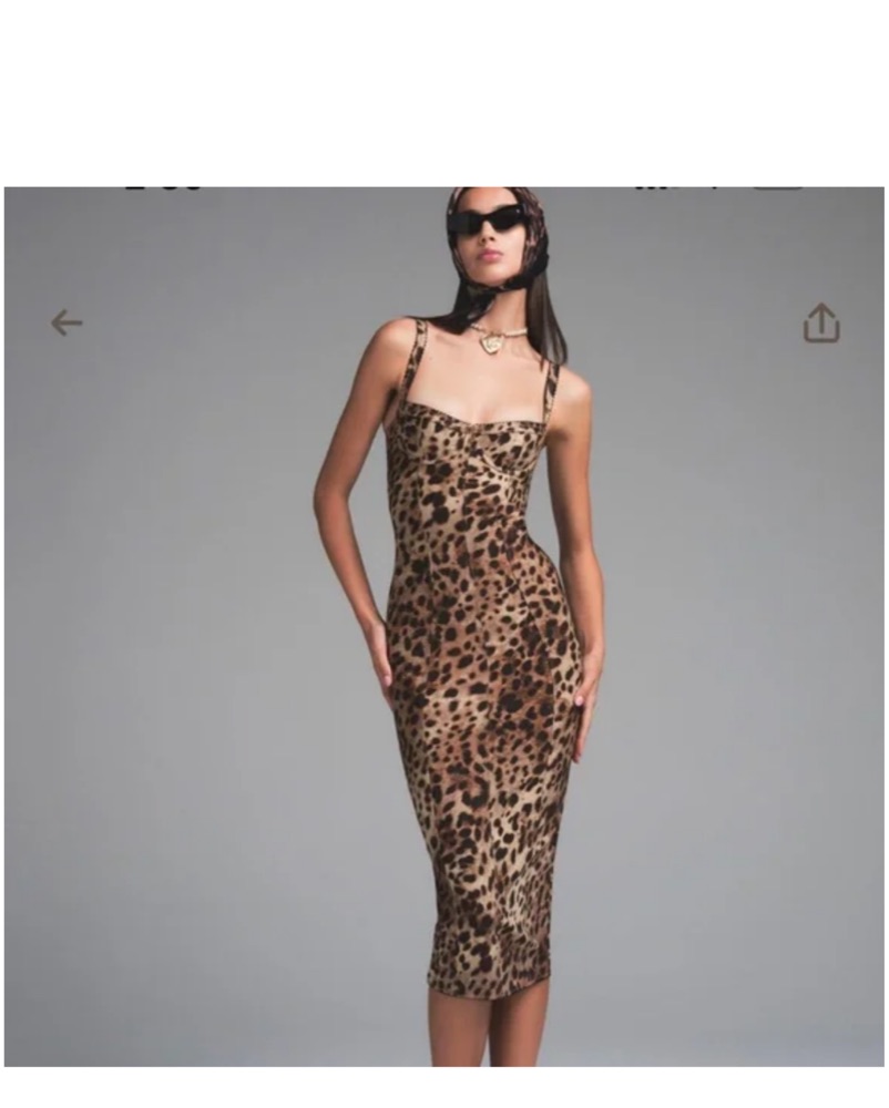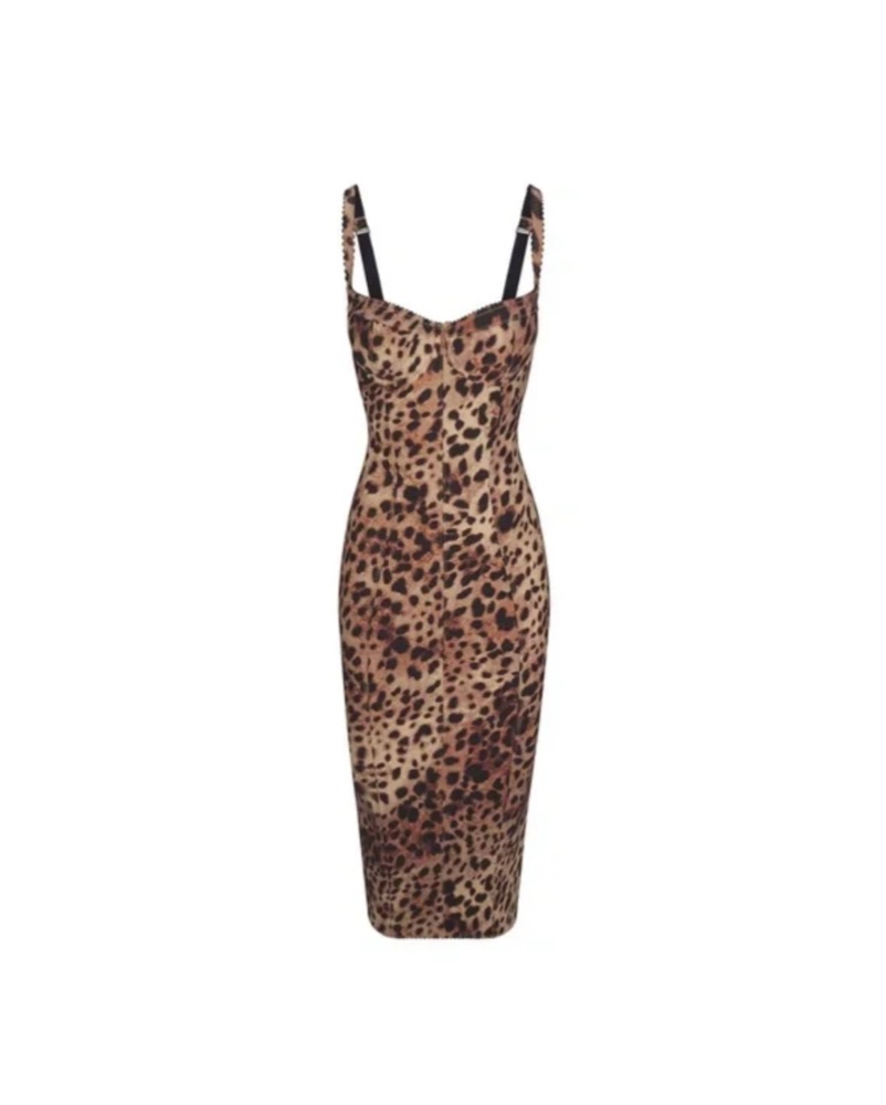Embrace your inner bombshell in this alluring leopard print midi dress. Perfect for a night out on the town or a special occasion.