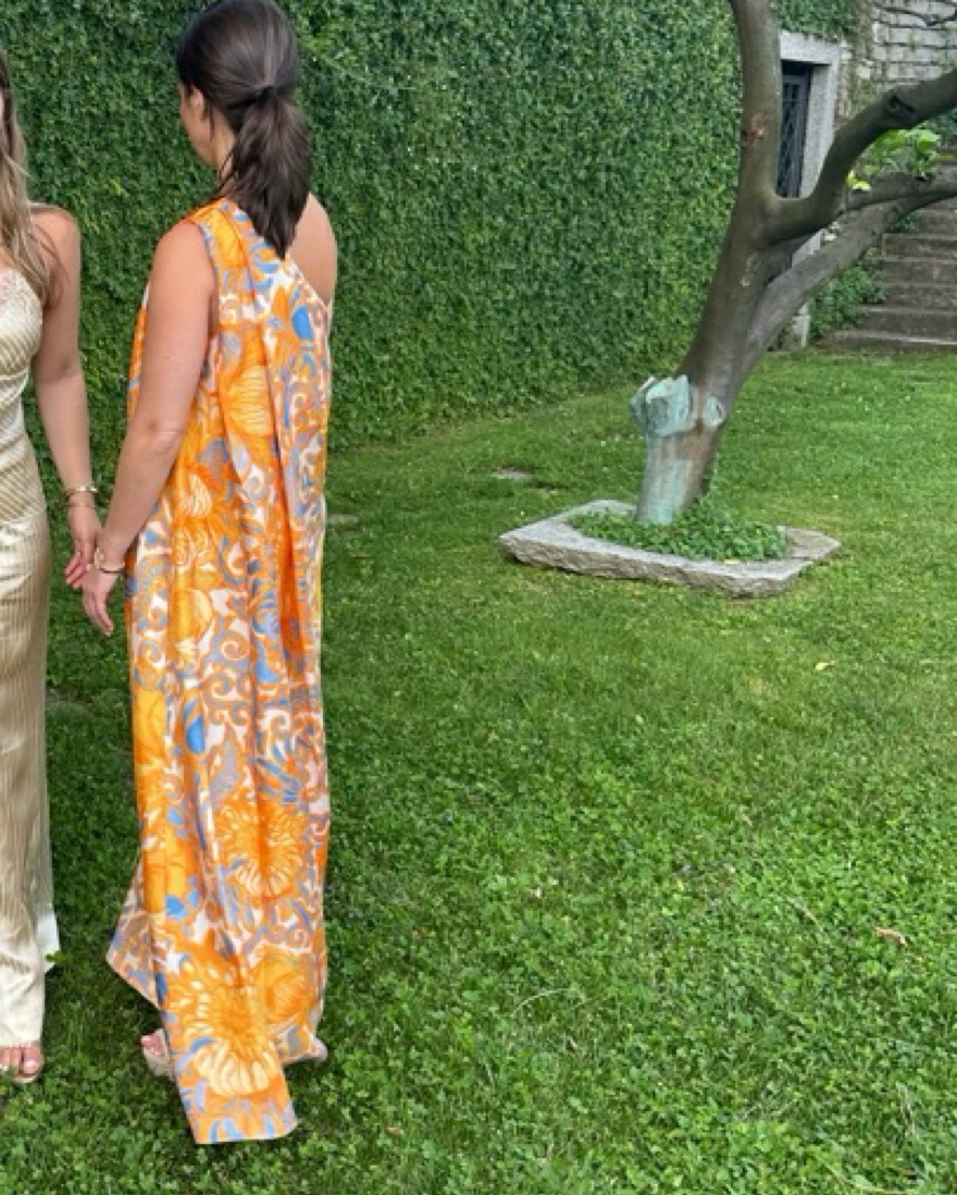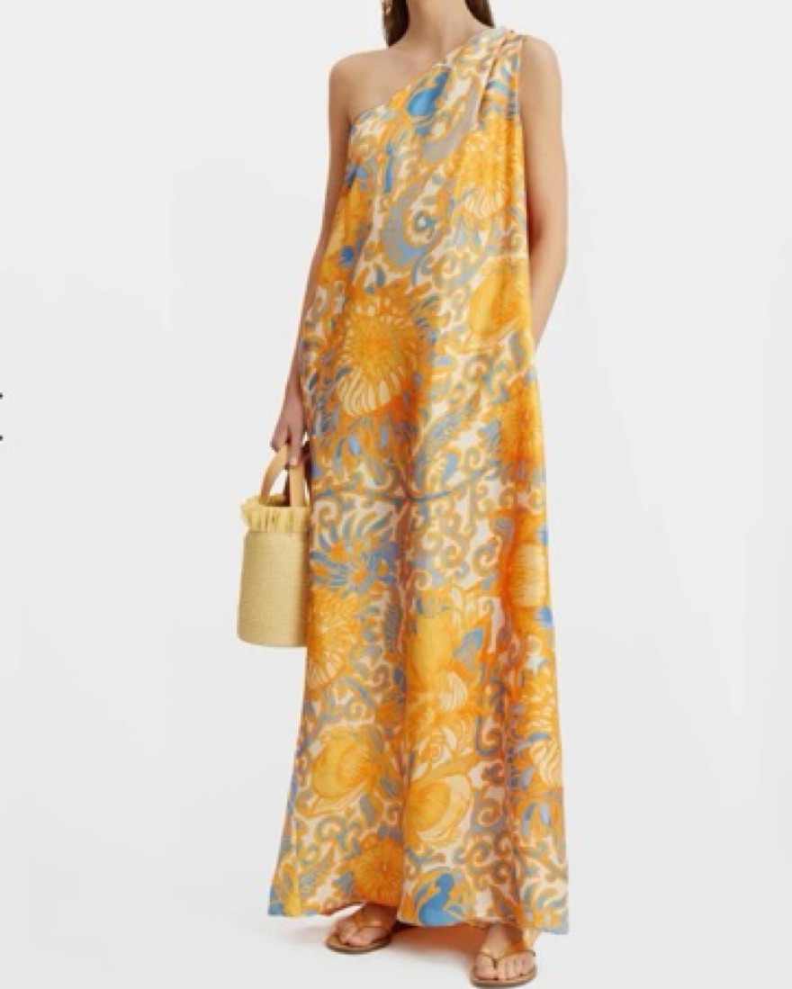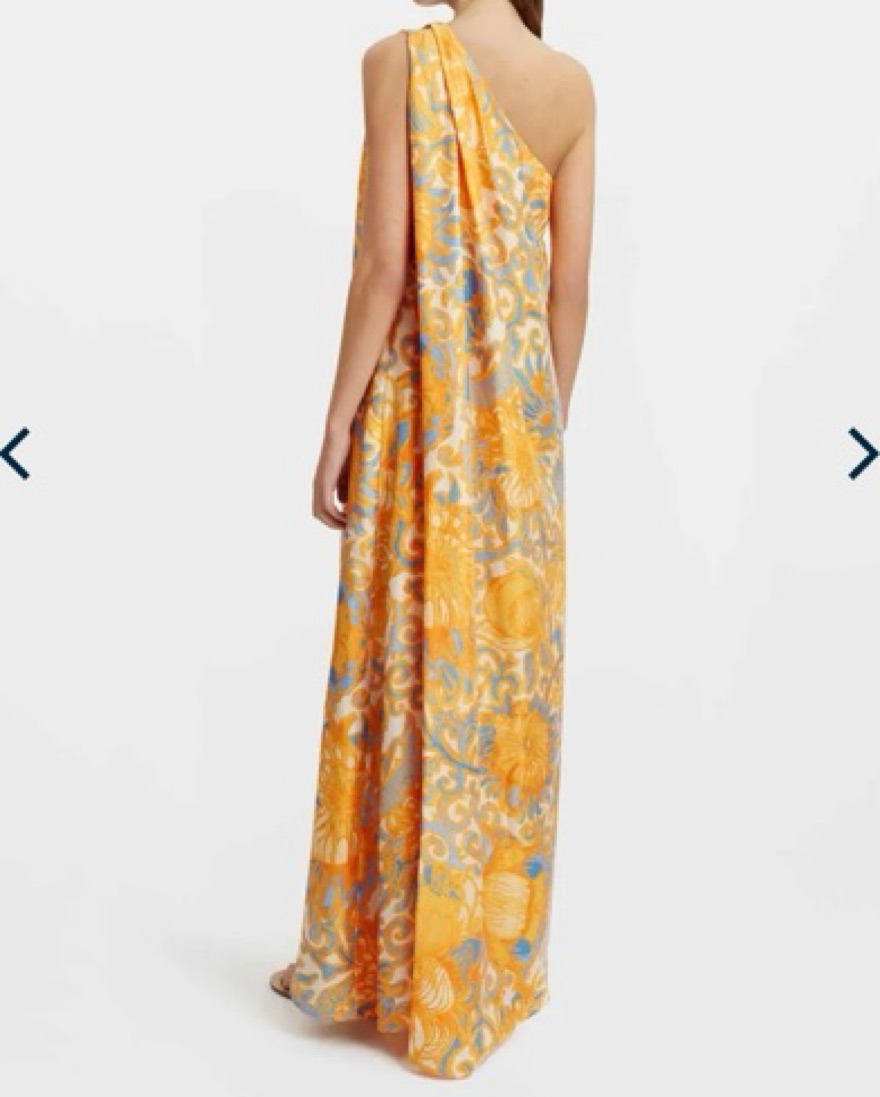 Gorgeous La DoubleJ Roy dress in orange / blue print. One shoulder. Silk.