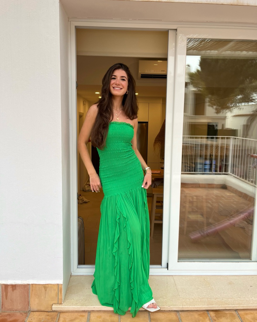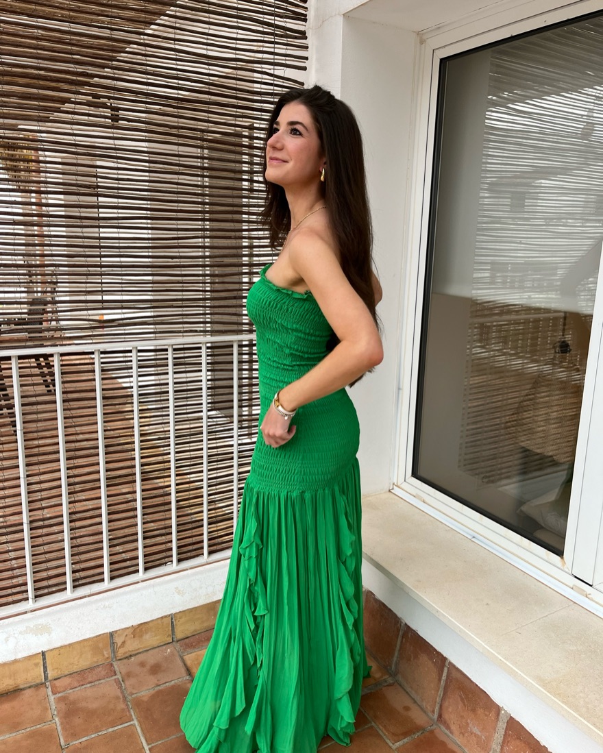 Green Line & Dot Strapless Maxi Dress