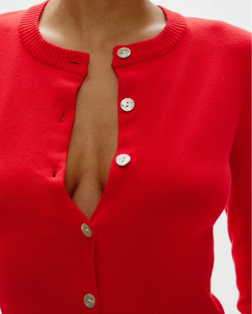 Cherry knit set perfect for any season! (dry cleaning fee included in price) spots and stains will be charged extra***