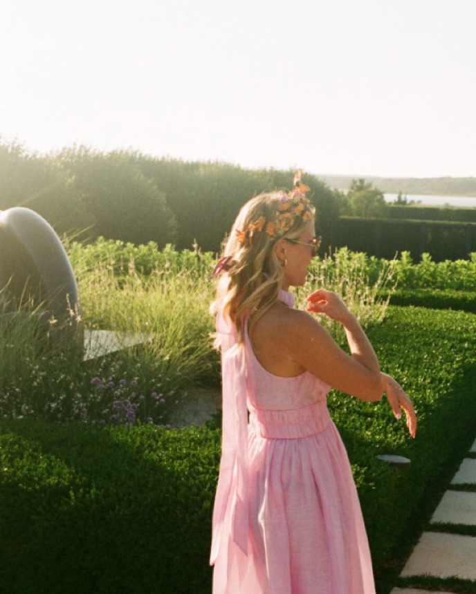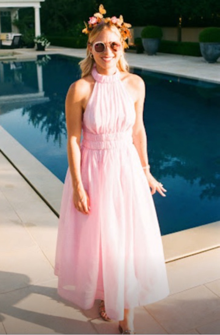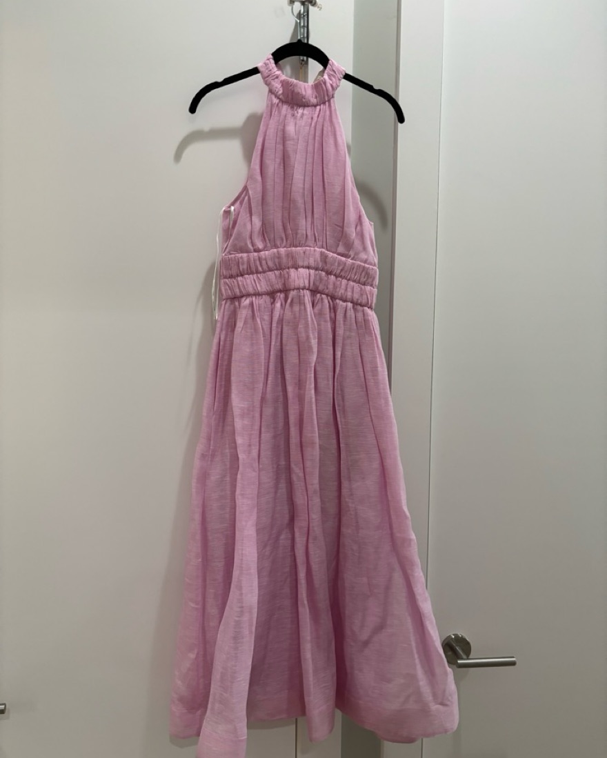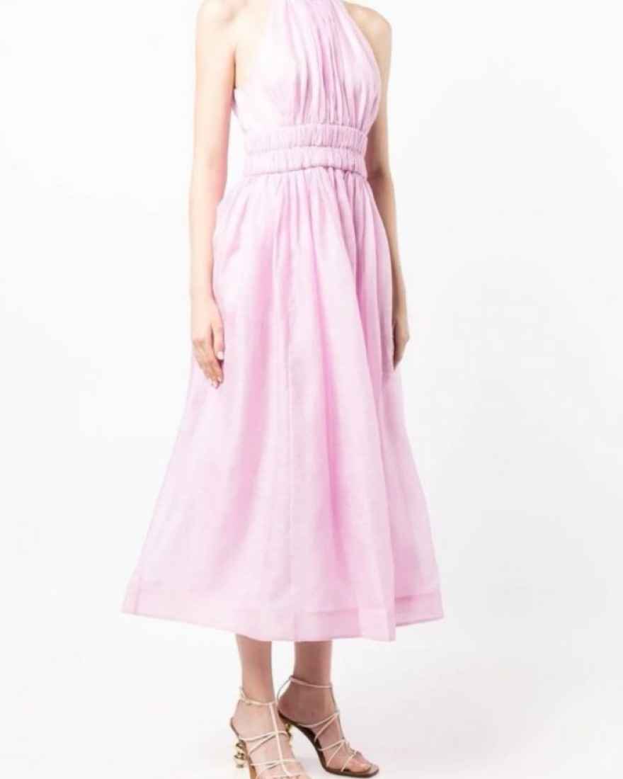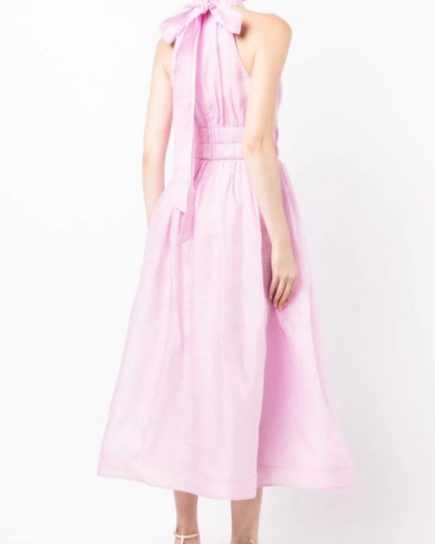 Zimmerman “Prima Persimmon Pink Halter Midi Dress.” Pink linen halter bow dress tee length. Perfect for a spring/summer wedding or midsummer party