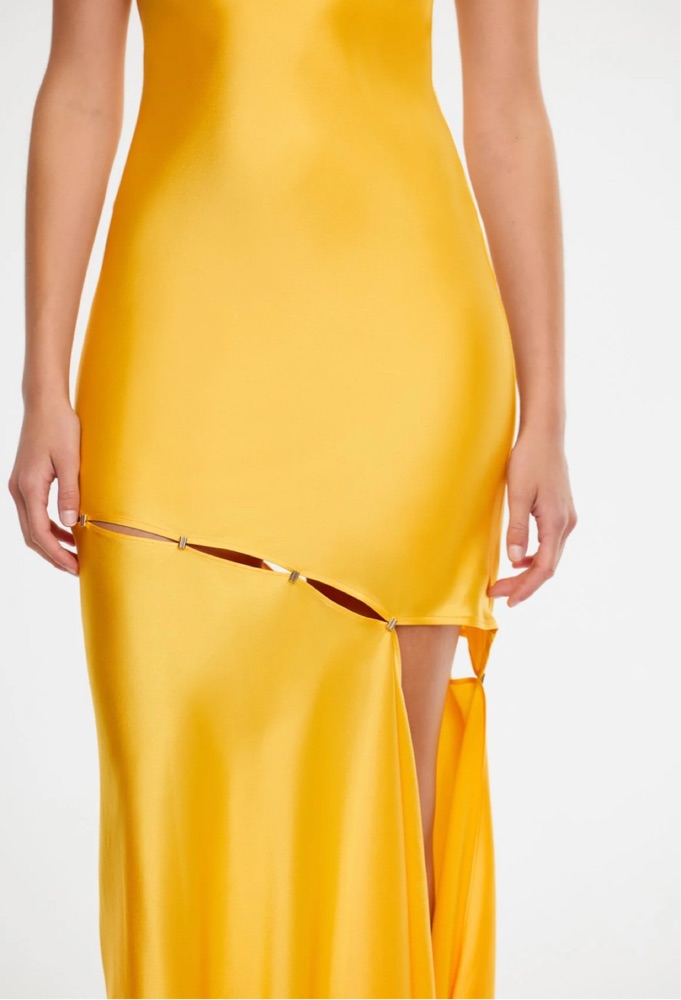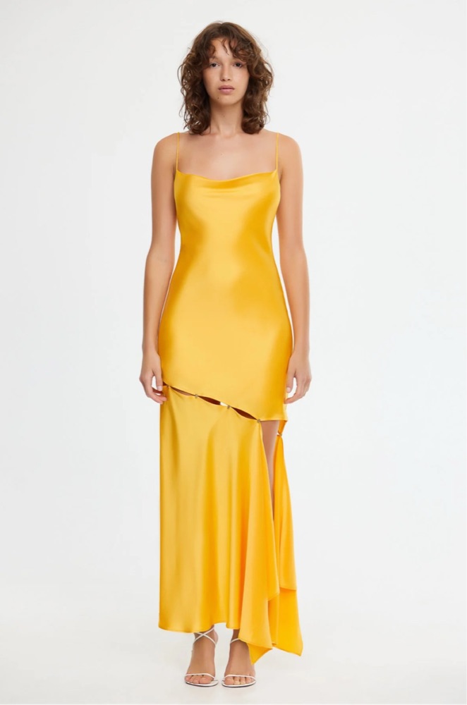 Acler Yellow Gold Satin Maxi Dress