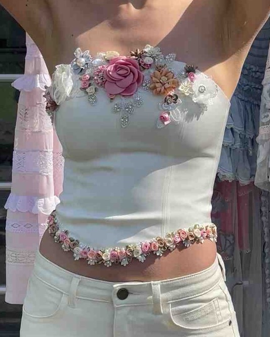 fillyboo peaches and pearls bustier in ivory. handmade & hand beaded! perfect for bridal events or a classy brunch!