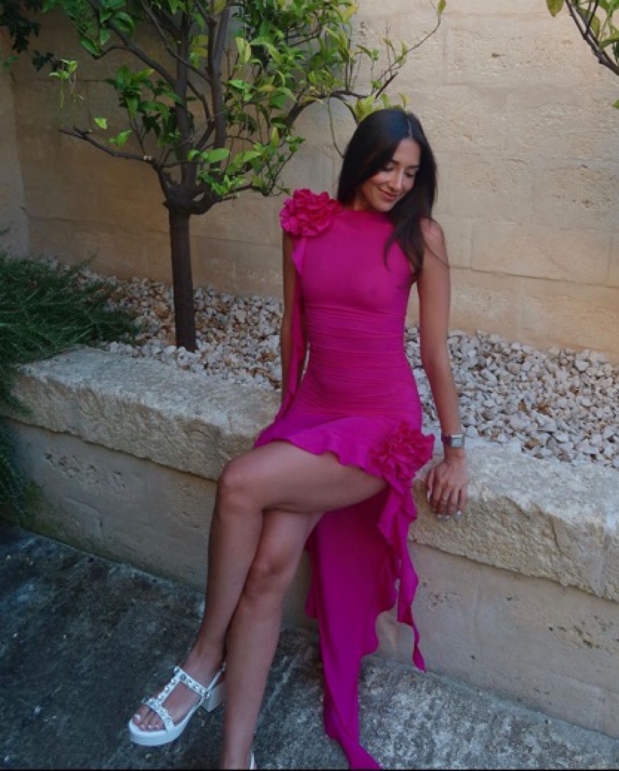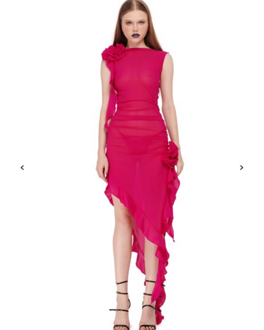 Hot Pink, Worn once, fitted with a bit of stretch, see through, can negotiate rental price