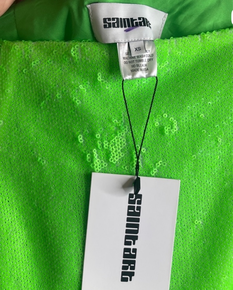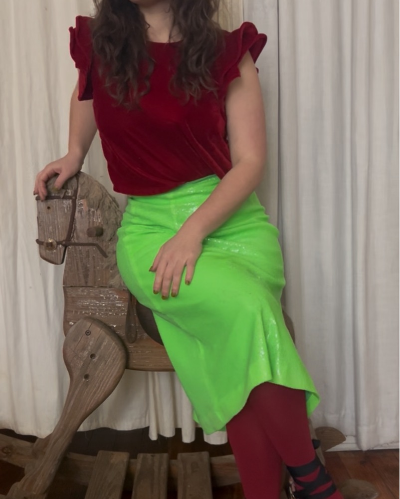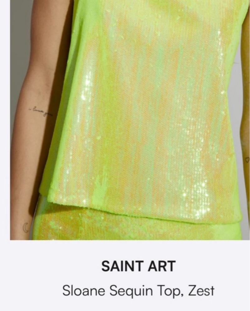 Sloane sequin skirt, very brat girl neon green, they call the color zest. style name is Sloane but I only could find pics of the top online so I included that, color is like the first picture not the online listing