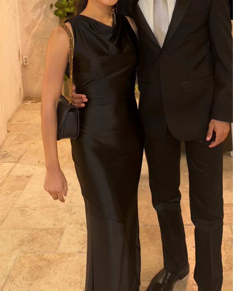 This sleek and sophisticated black maxi dress is perfect for a formal event or special occasion. The material is stretchy and hugs you in all the right places!