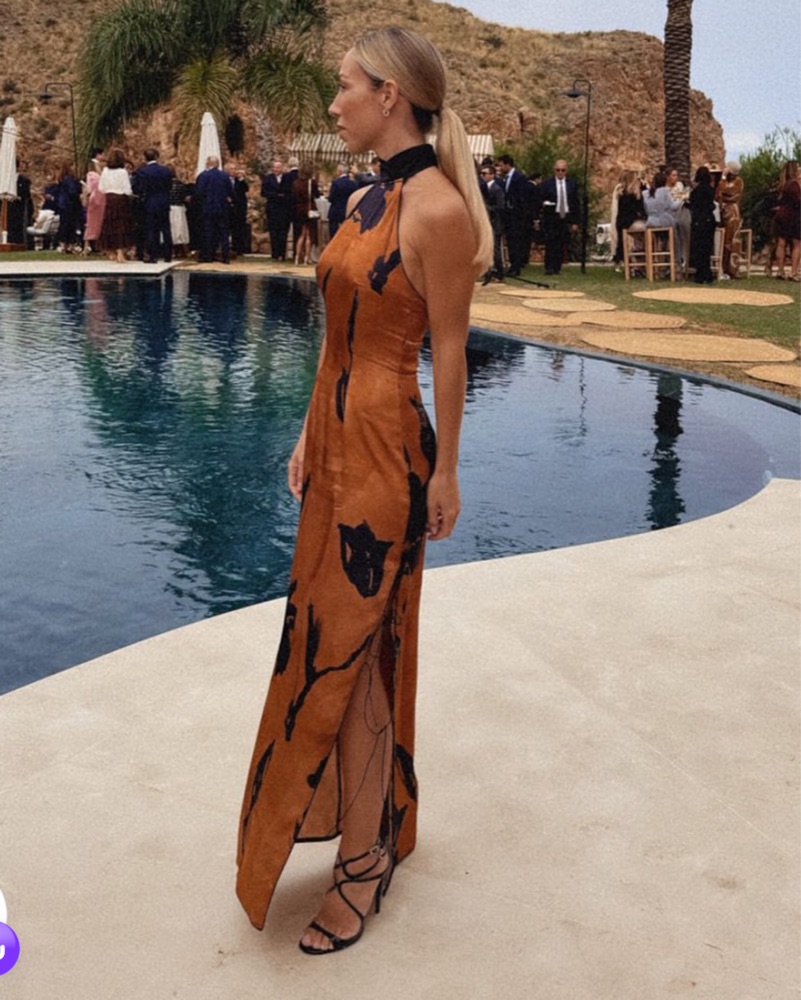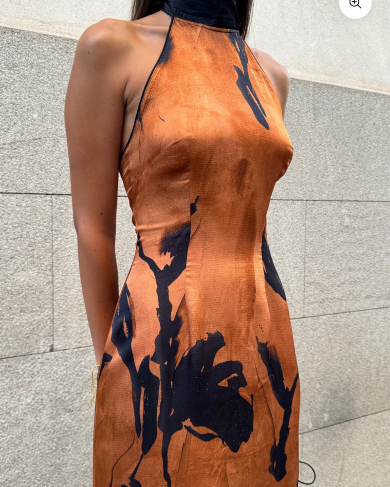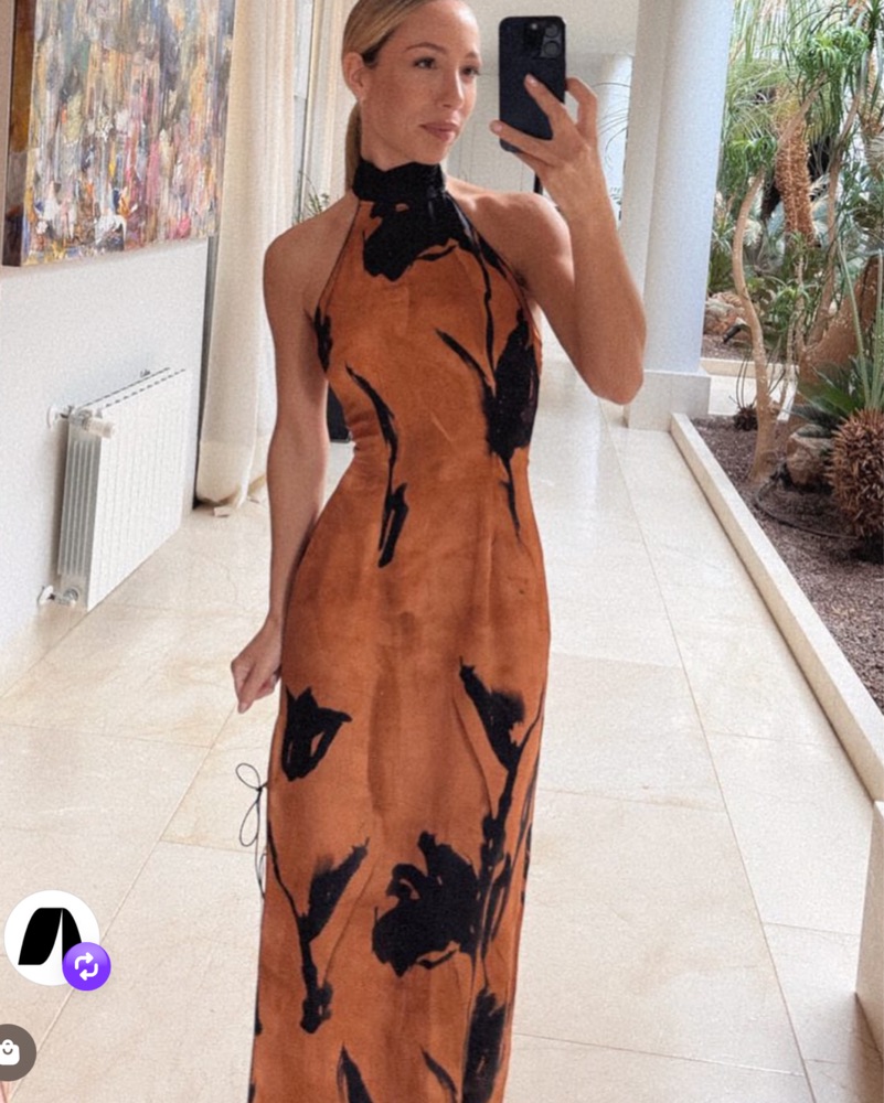 This stunning maxi dress is perfect for any special occasion. The vibrant floral print and satin material create a luxurious and eye-catching look.