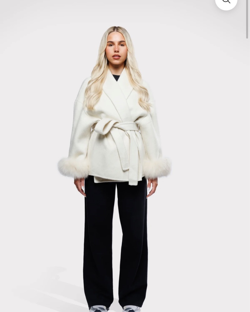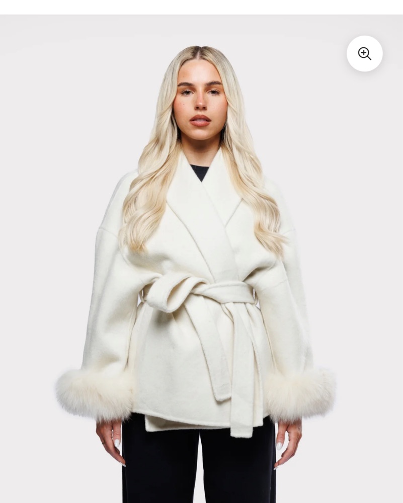 This ultra feminine Maison Maia coat is perfect for chilly winter days. The soft, plush fur trim adds a touch of glamour to any outfit. Perfect for Aspen or the French Alps! Tags: Maison Maia, white fur coat, white fur, Aspen, Apres Ski, snow bunny.
