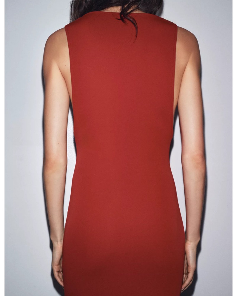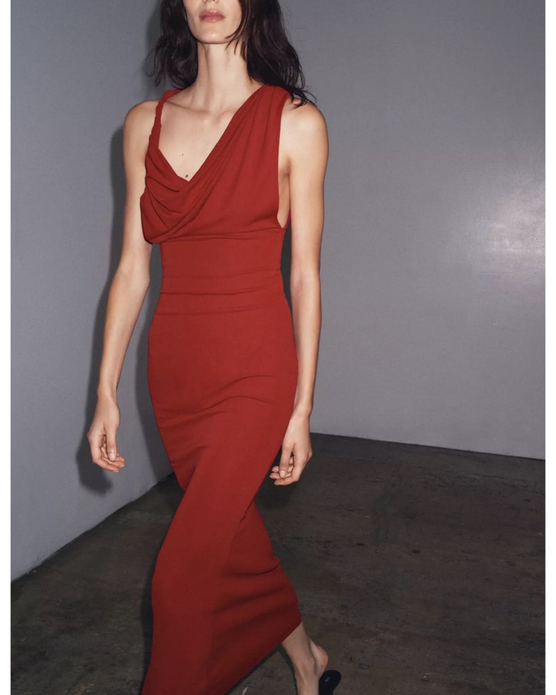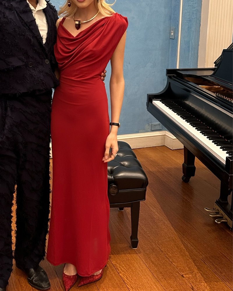 Marked size M, I’m a XS so I wore it oversized off shoulder! Many ways to style this dress with the drapery neckline and straps! Can fit XS-M due to mesh stretchy fabric! Perfect for event or wedding!