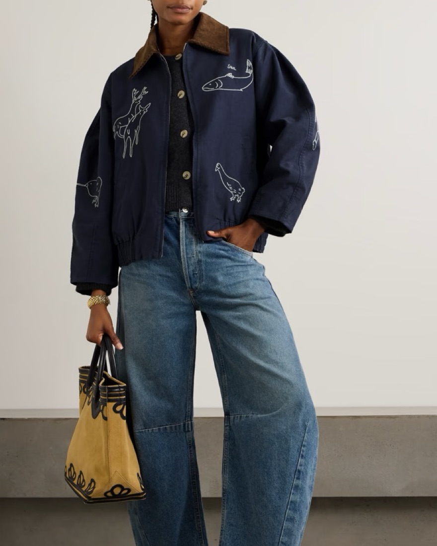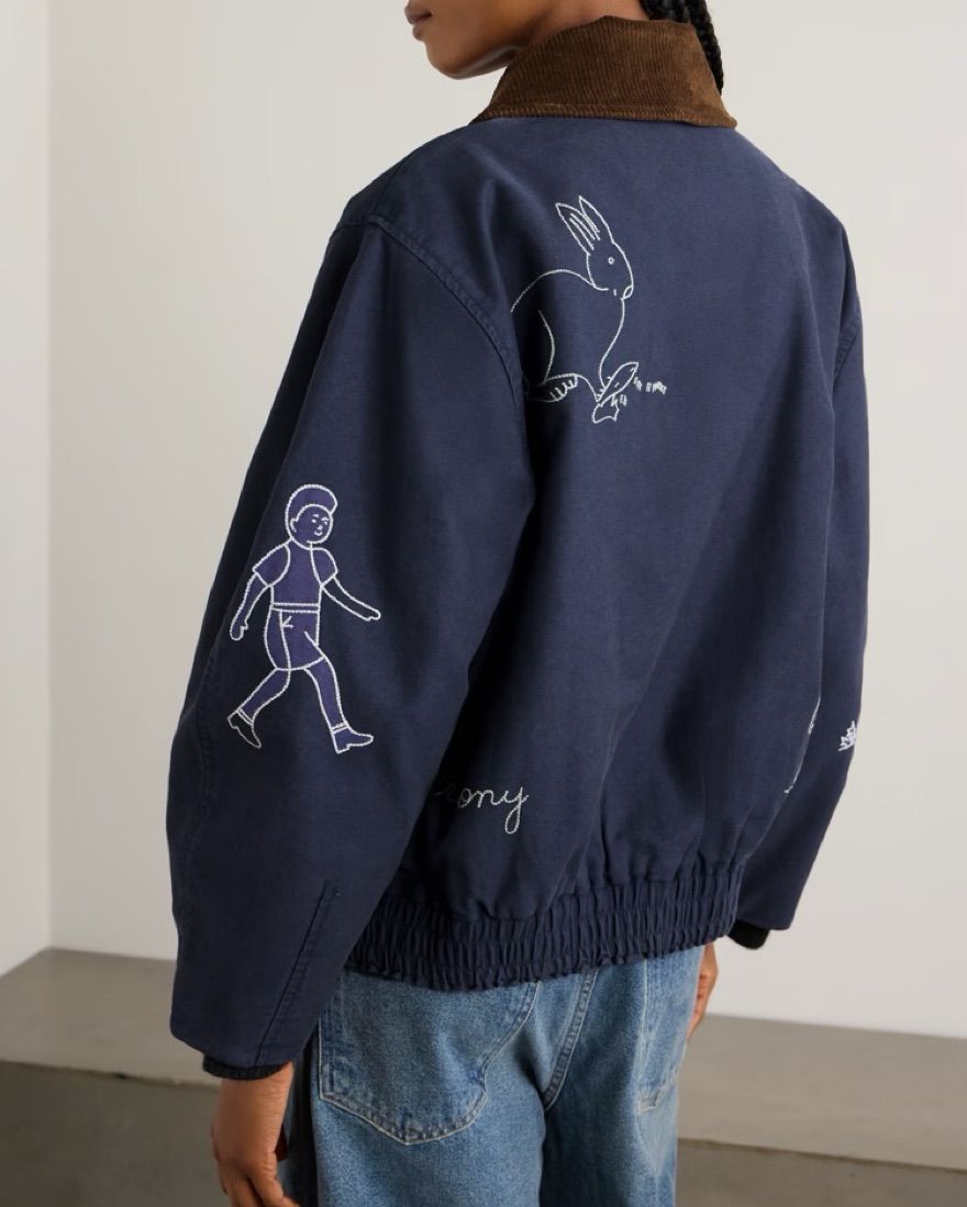 Sea's 'Demi' jacket is intricately embroidered with playful animal motifs. Made from cotton-canvas, it has an oversized shape with sloped shoulders and is framed with a contrasting corduroy collar. Wear yours with a T-shirt and cargo pants.