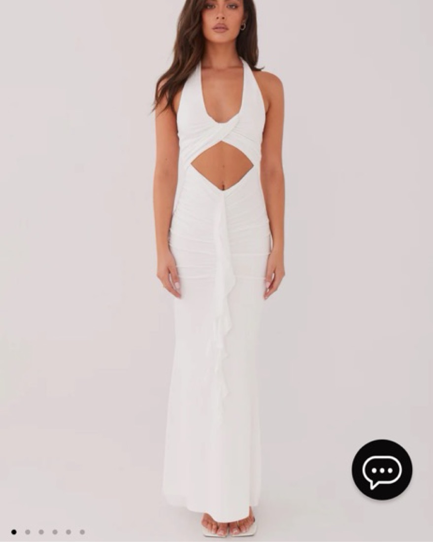 White frill maxi dress. Aus 8 (size 4/6) true to size and very flattering. It is fitted and in perfect conditon. Product details included in images. Height is 5’3. Pickup or delivery in williamsburg.