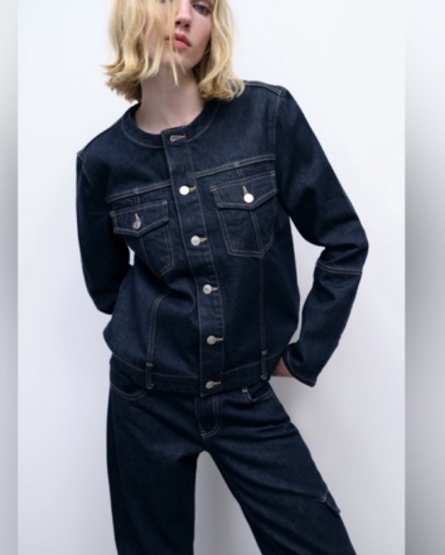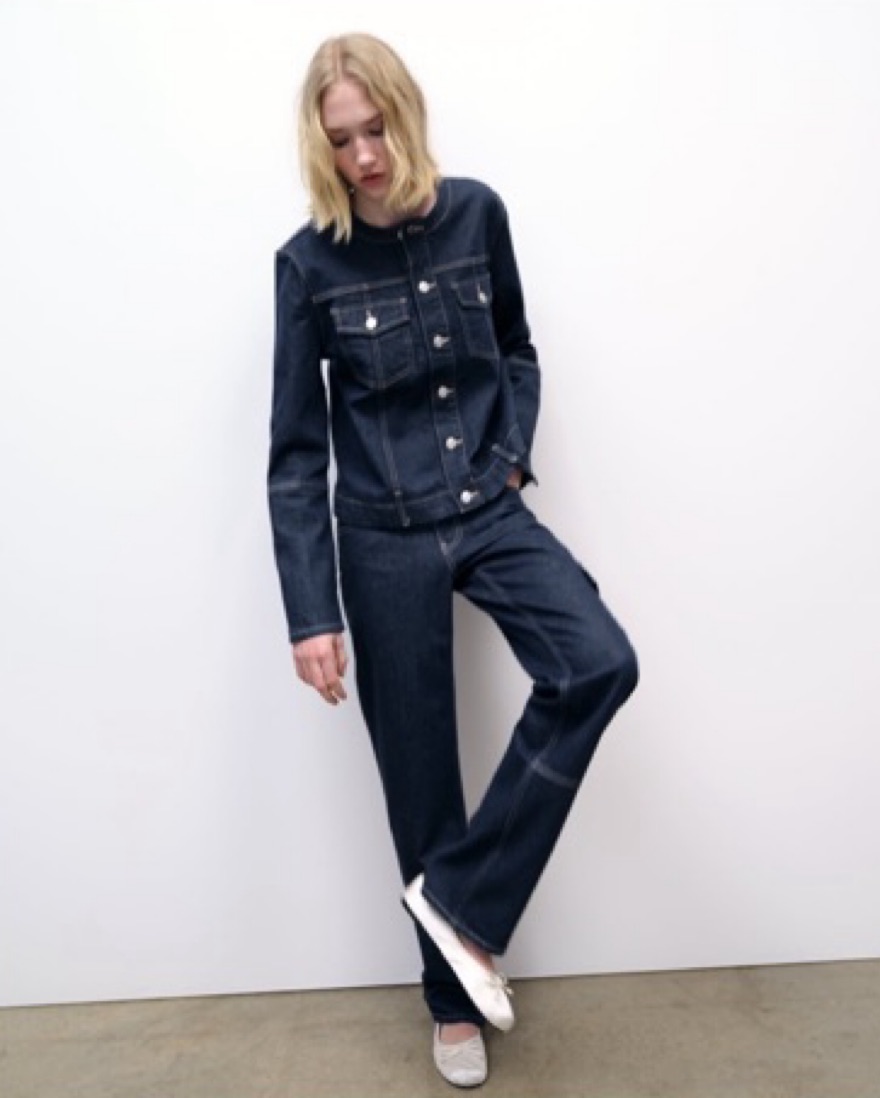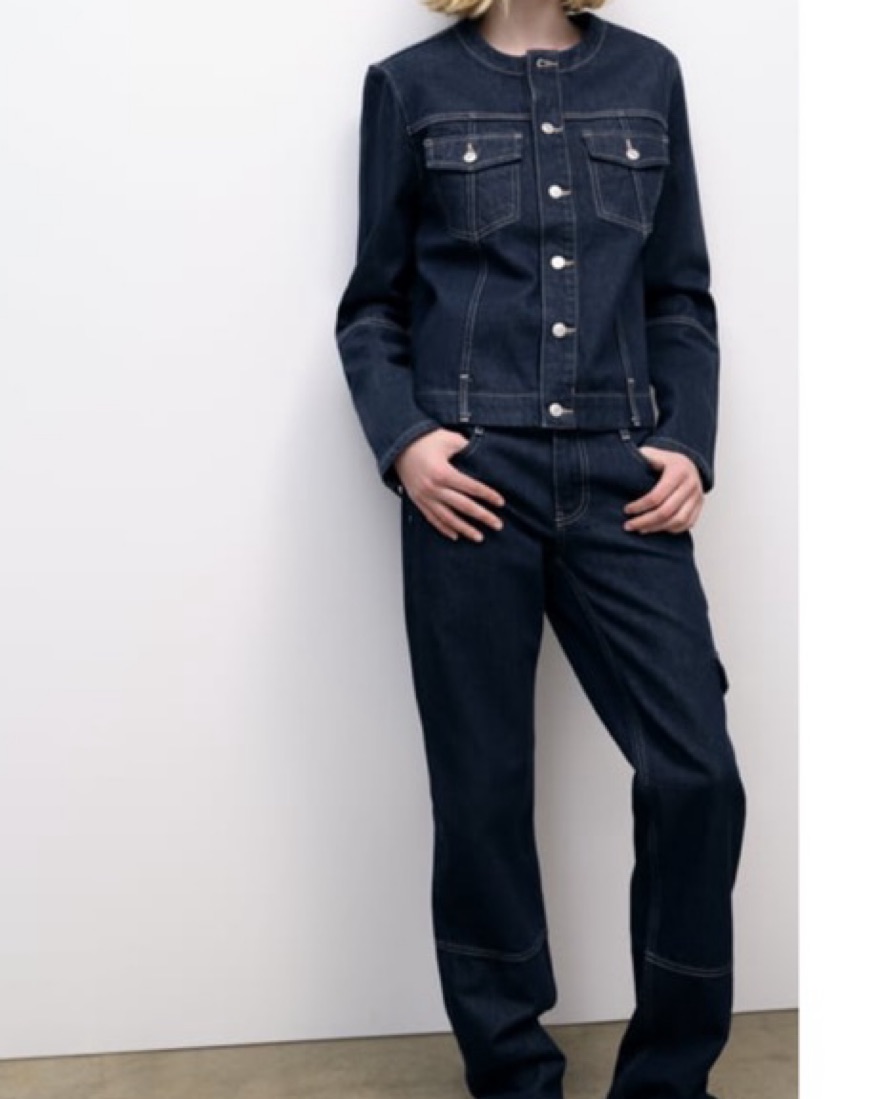 Zara matching denim set. Jeans have zippers at the bottom so they can be straight or flared.