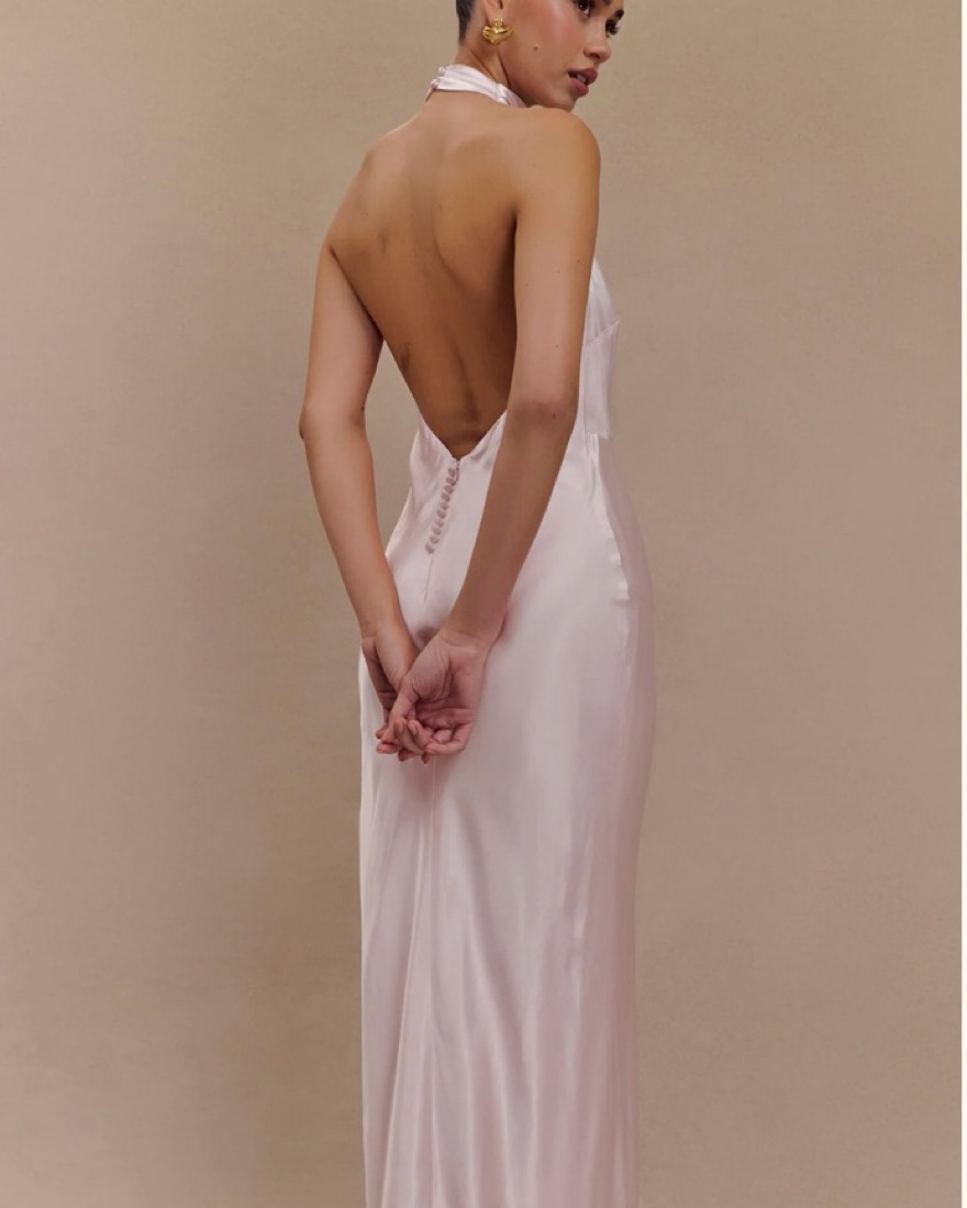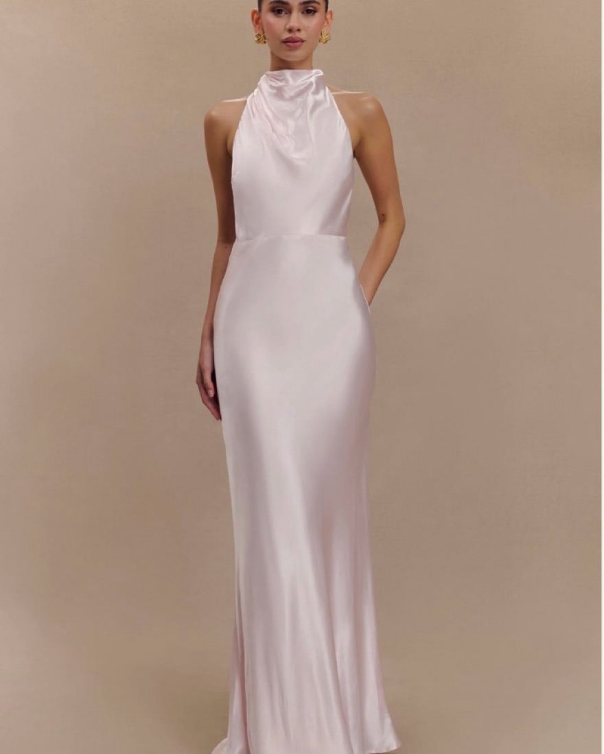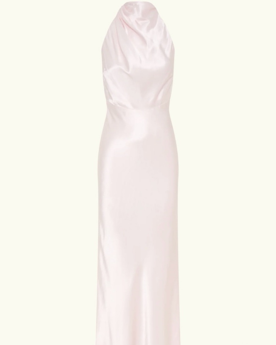 Esther Iridescent Satin Cowl Maxi Dress by Meshki - Pickle
