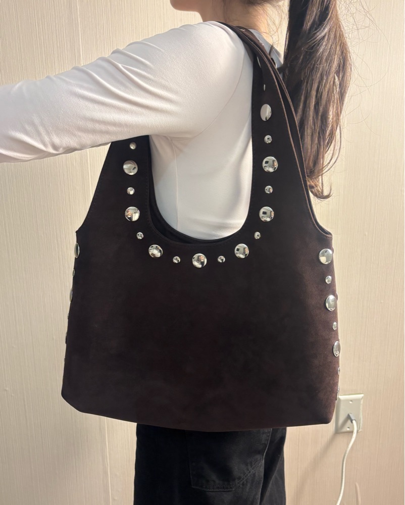Pull & Bear Studded Suede Hobo Bag