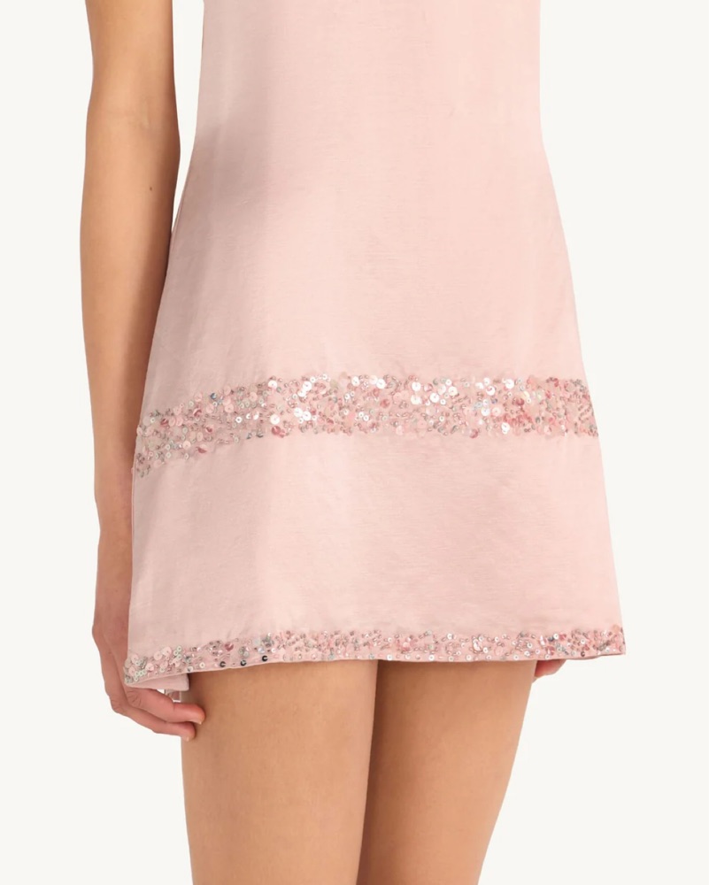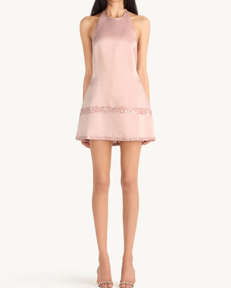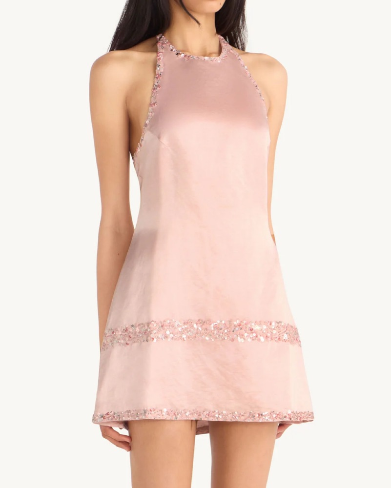 Asta Resort Marina hand Beaded - pink - Mini Dress - size Small - halter top beaded detail - retails $360
