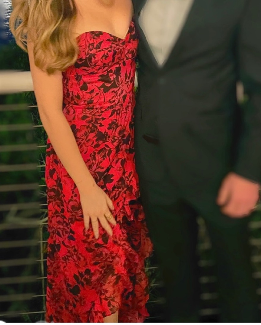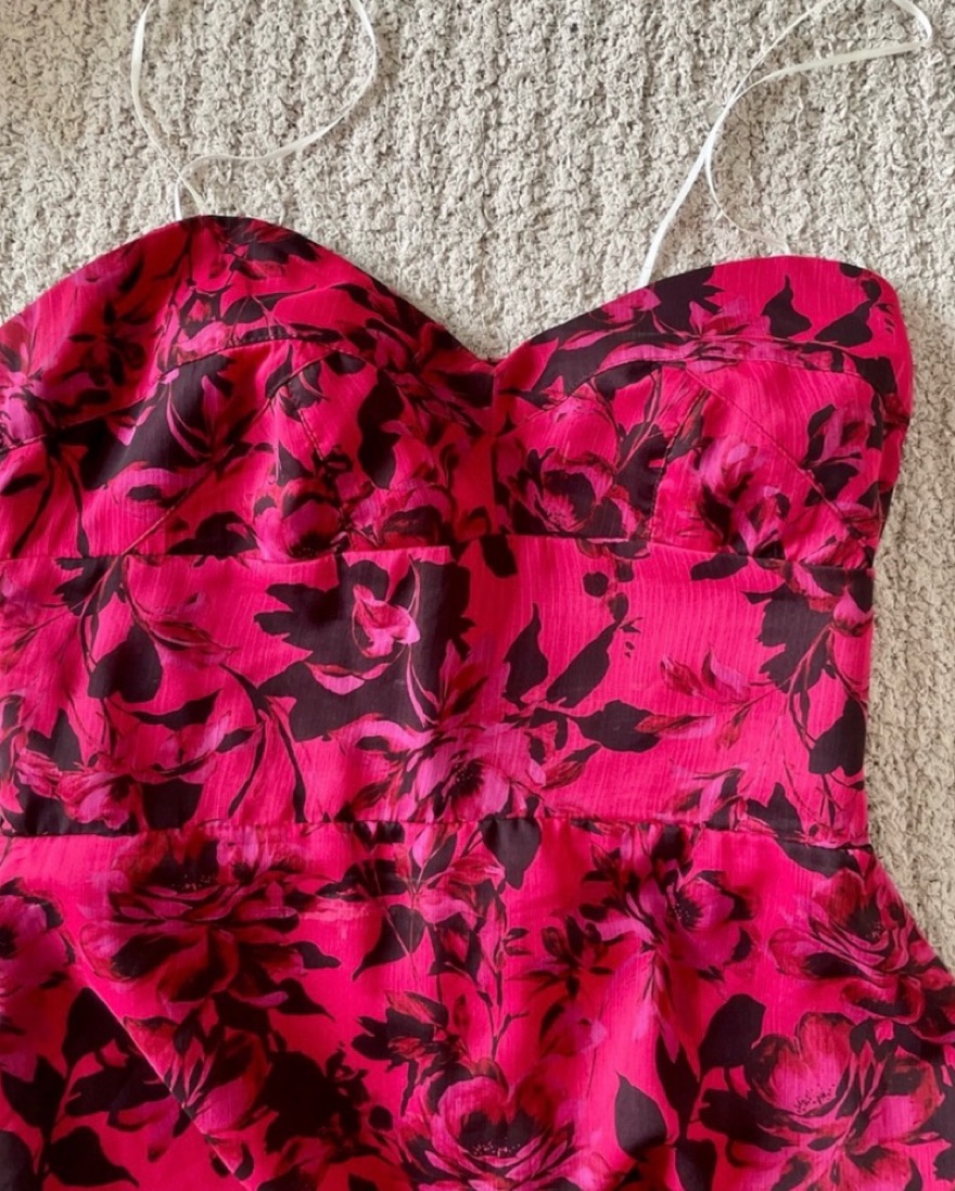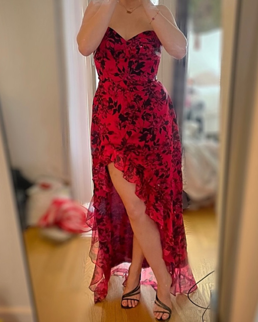 Amanda Uprichard Floral Ruffle Asymmetric Strapless Gown in Femme - In great condition, only worn once.