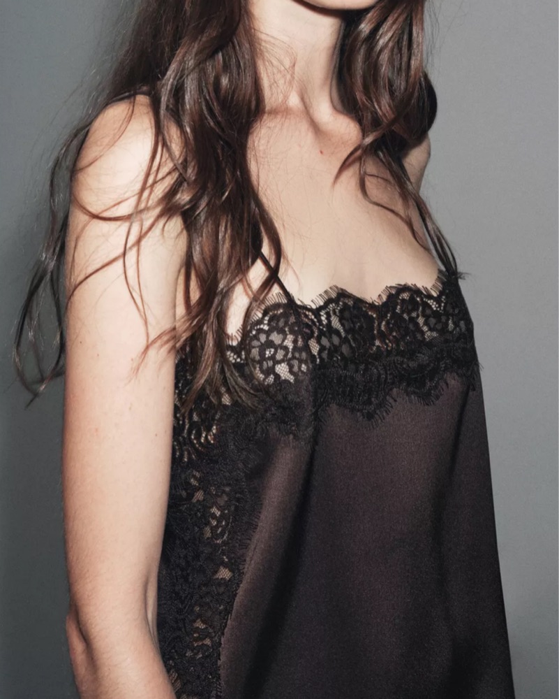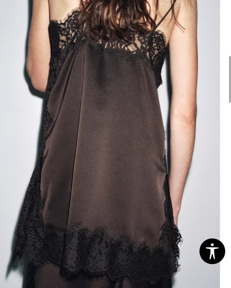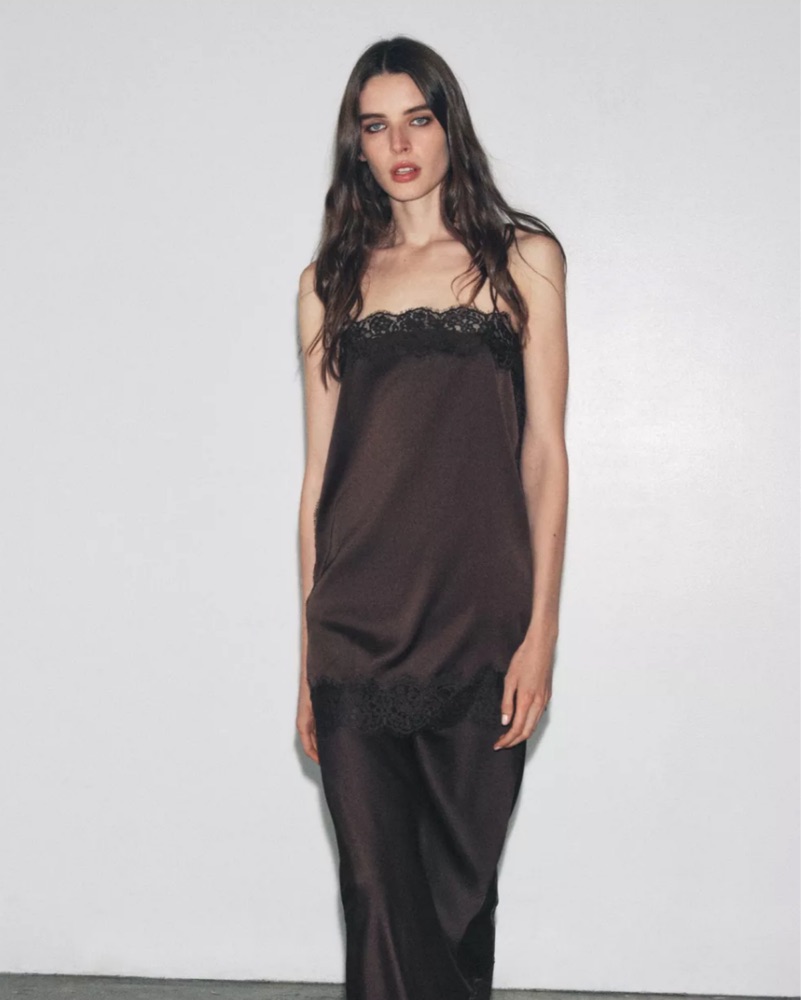 Zara Satin Effect Lace Top In Dark Brown by Zara - Pickle