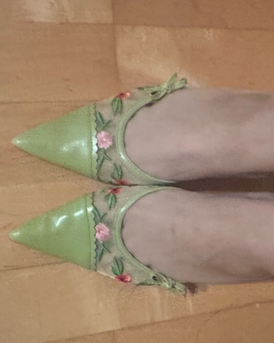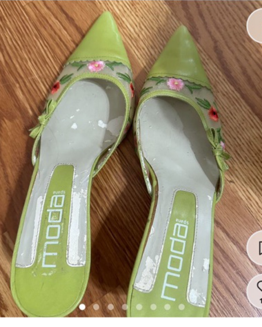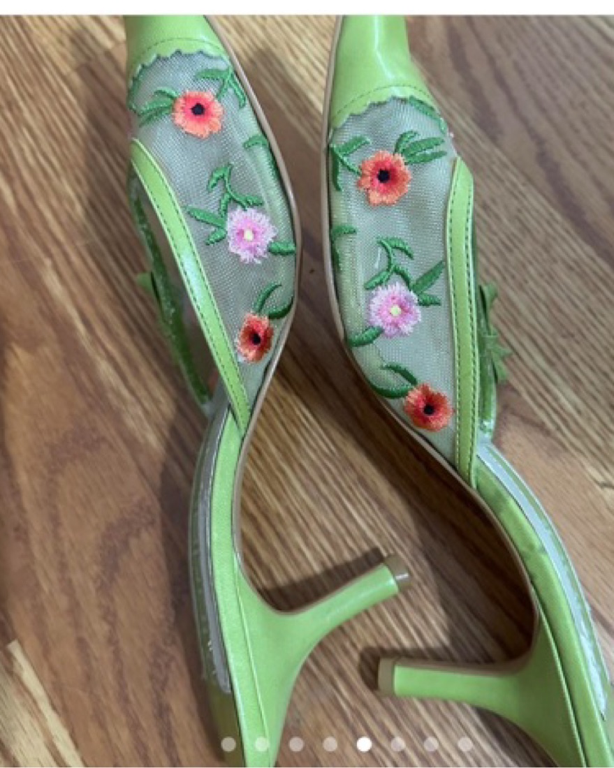 Vintage thrifted kitten heel. Size 8. Embroidered floral mesh kitten heel . Trendy !
