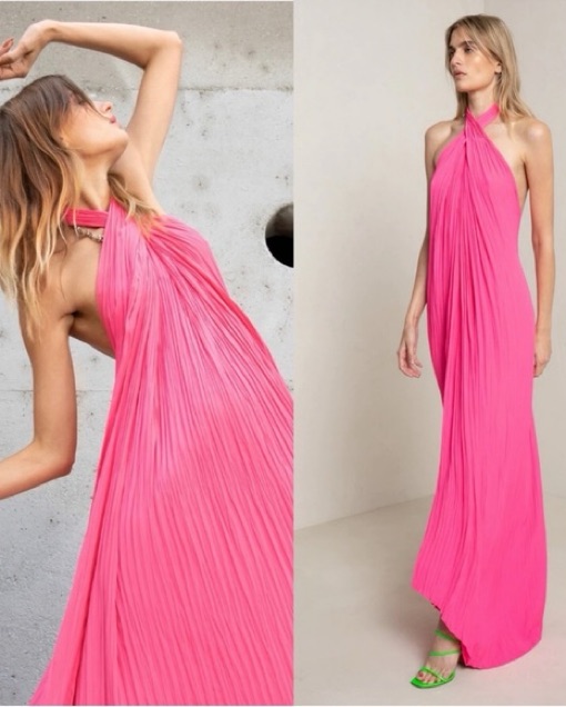 Size 6 ALC RIO Hot Pink high neck plisse satin dress. Marked as Medium because this dress could generously fit anyone sizes 4-10. Perfect for summer!