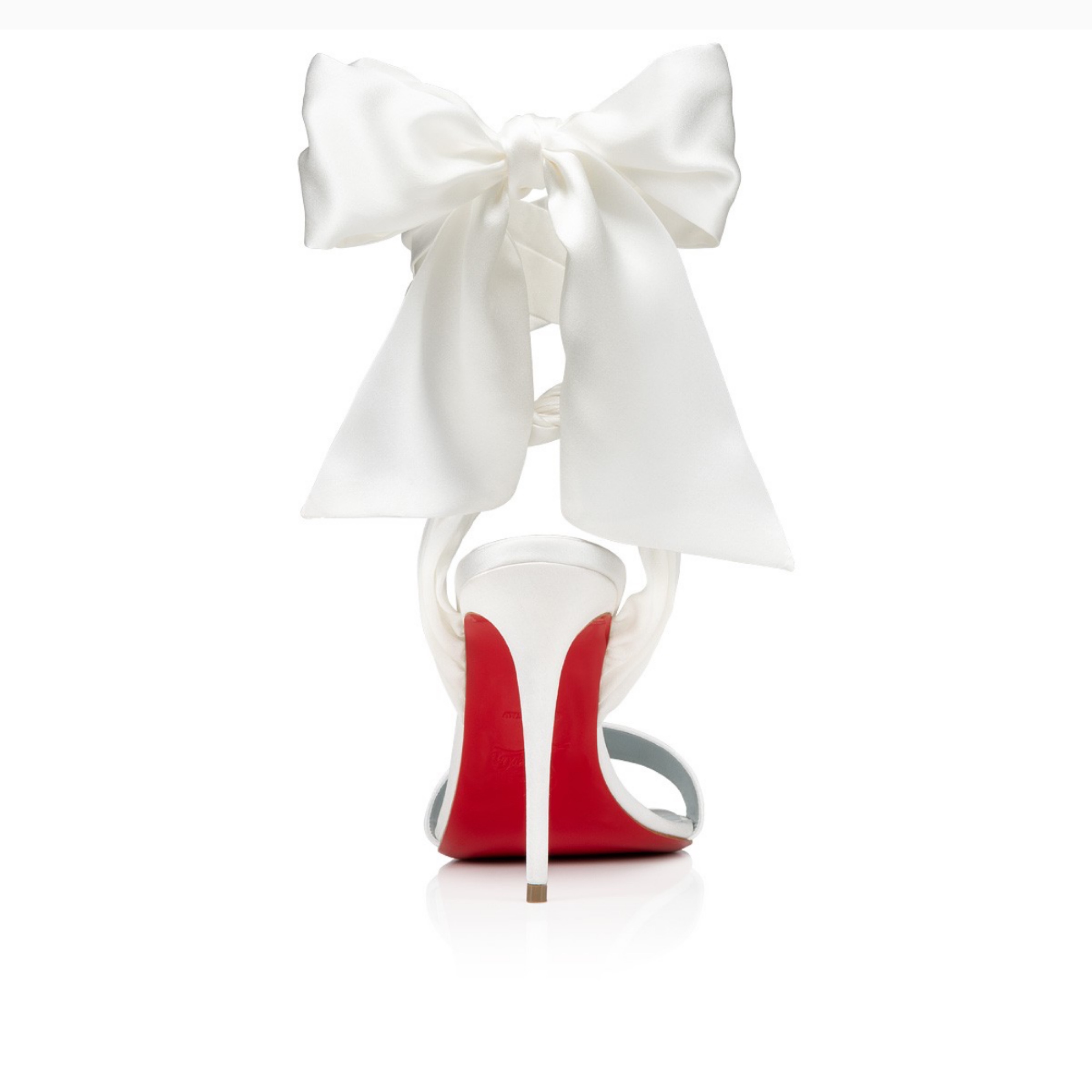 White, dainty, 100mm heel with a satin ribbon that wraps around the ankle. Gorgeous heels that would look amazing in bridal/wedding events