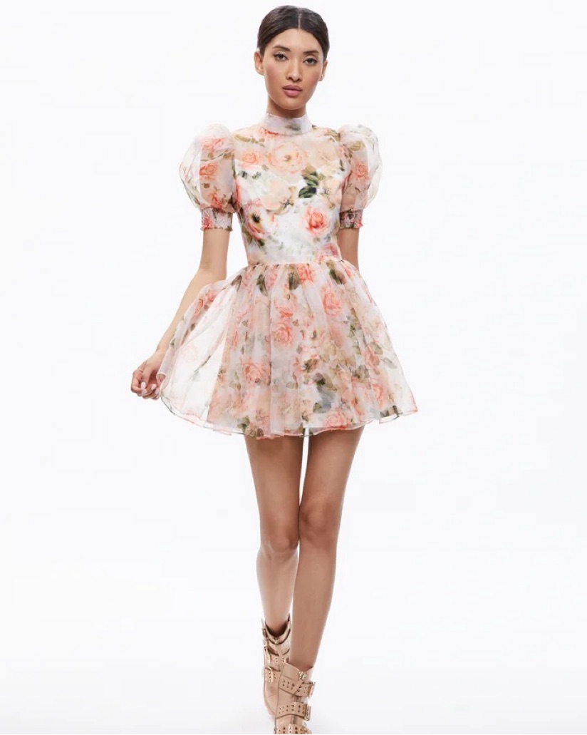 Alice + Olivia Puff Sleeve Mini Dress by Alice & Olivia - Pickle