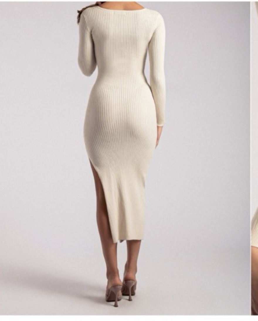 Long sleeve midi sweater dress from Meshki. So cute and comfortable! Great for girls’ or date nights.