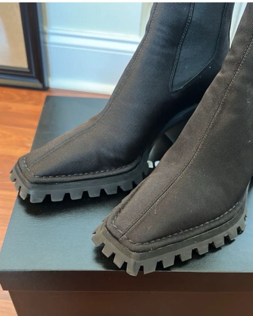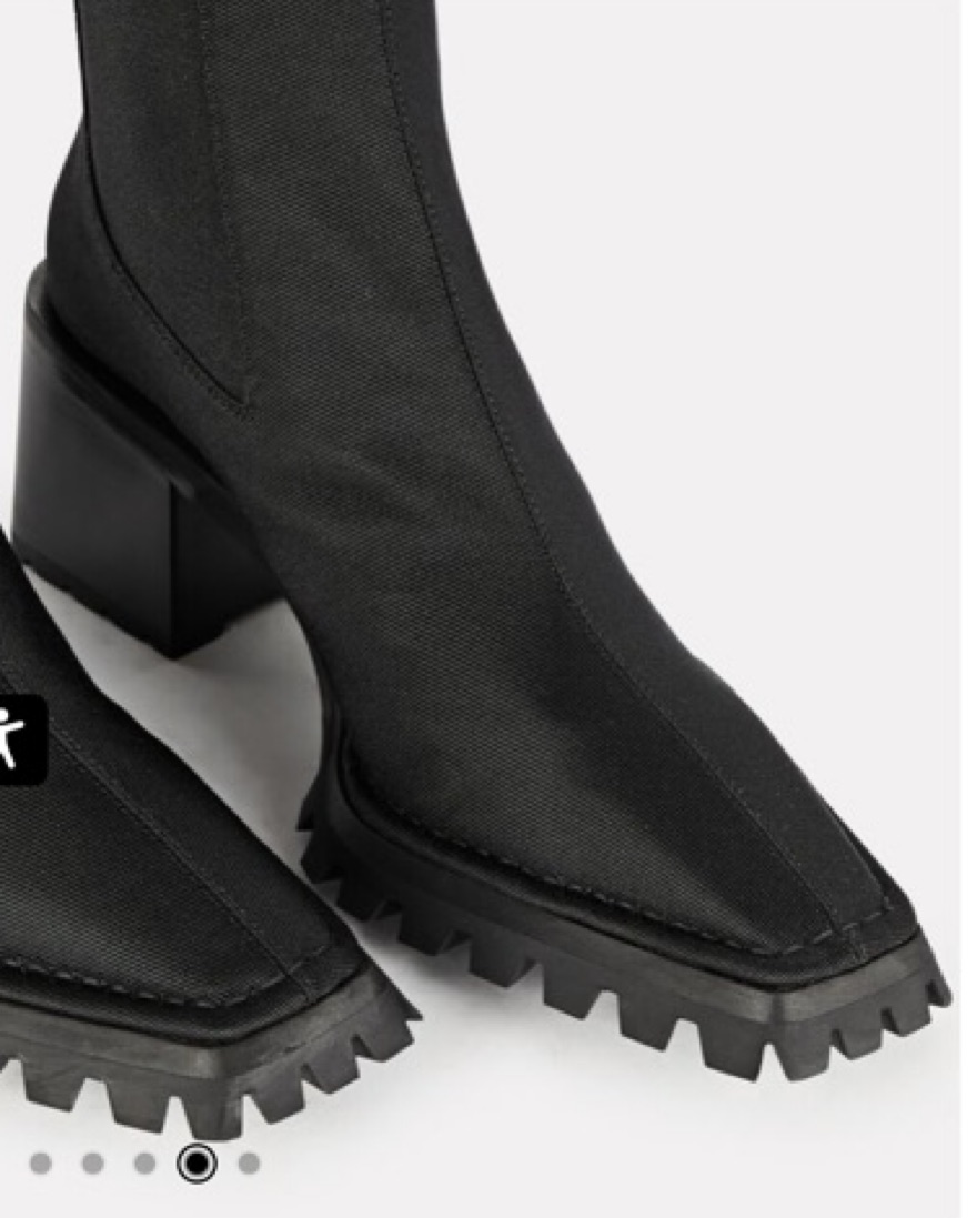 Alexander Wang's take on the classic Chelsea boot are set a top of-the-moment lug sole heels for a rugged finish in sock-tight knit nylon. Elasticized gore shaft. Back pull tabs. Rubber lug soles.