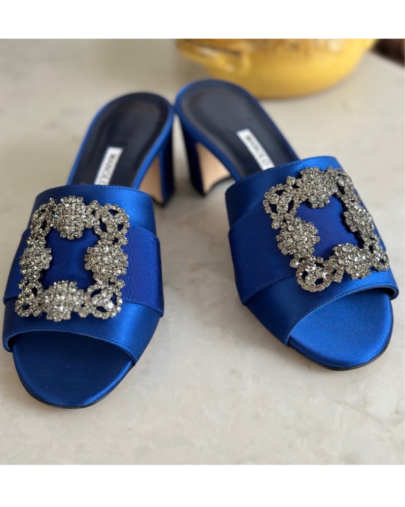 Manolo Blahnik 50mm Hangisi Sandals by Manolo Blahnik - Pickle