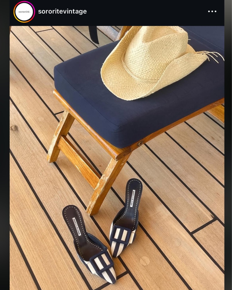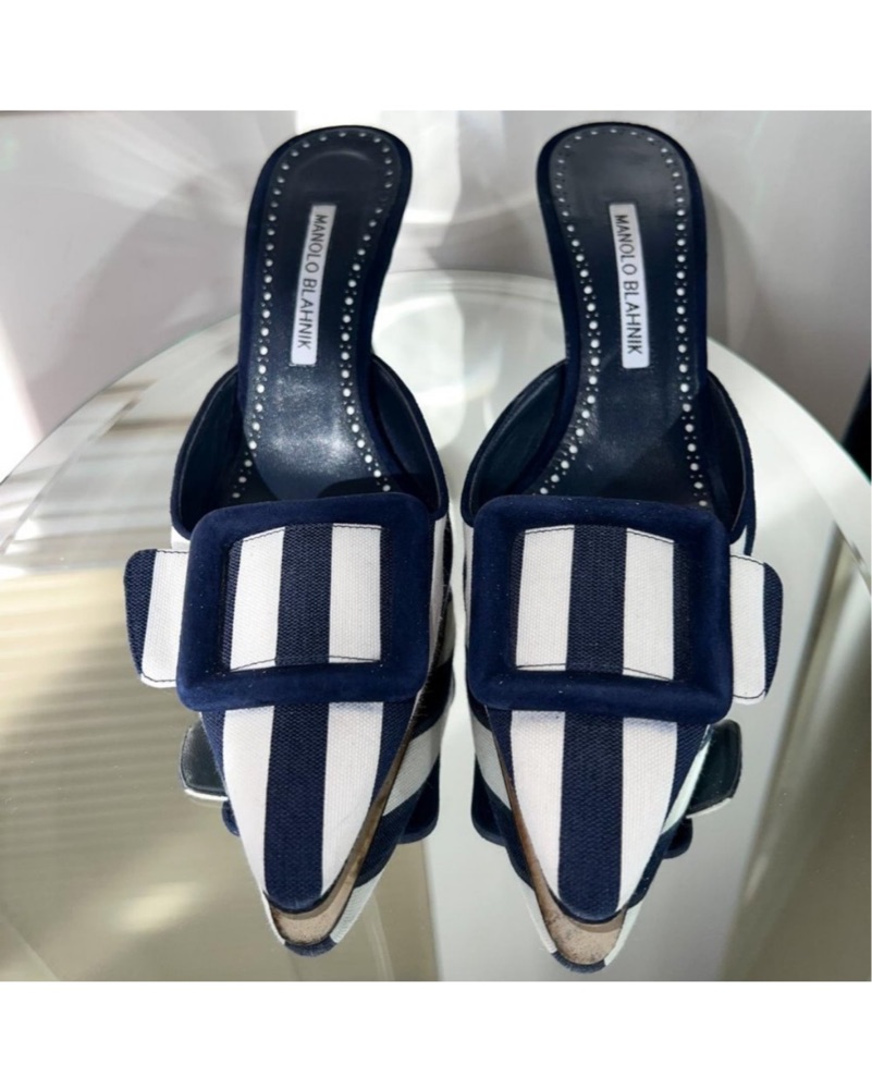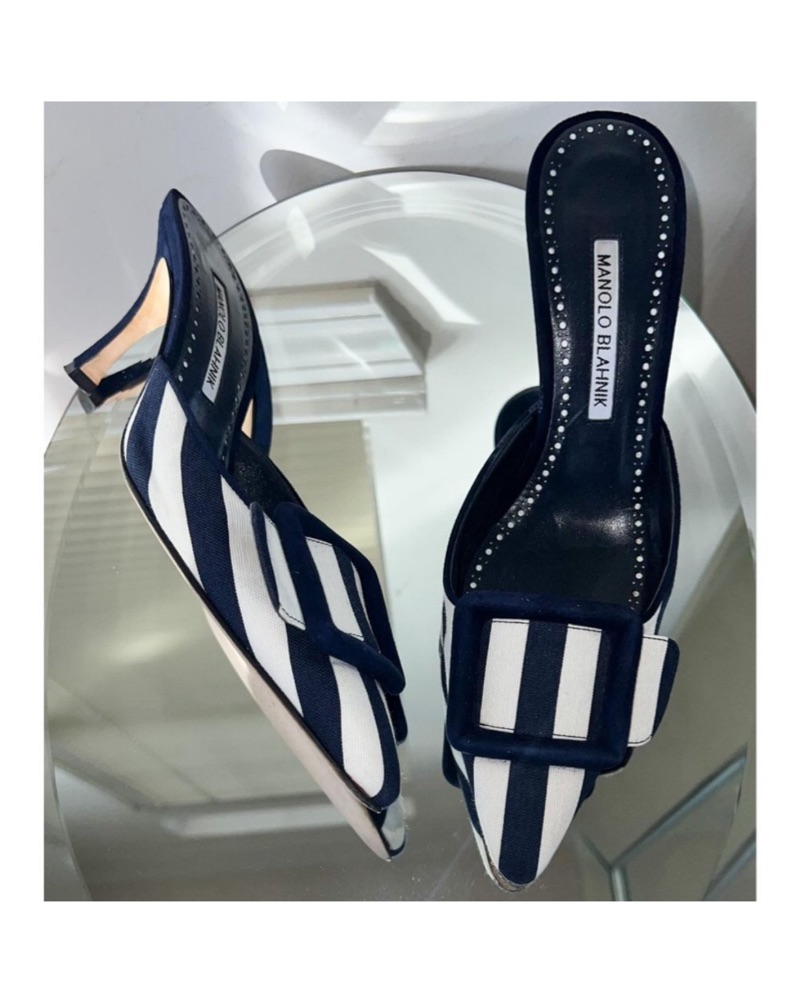 Manolo Striped Maysale Heels by Manolo Blahnik - Pickle