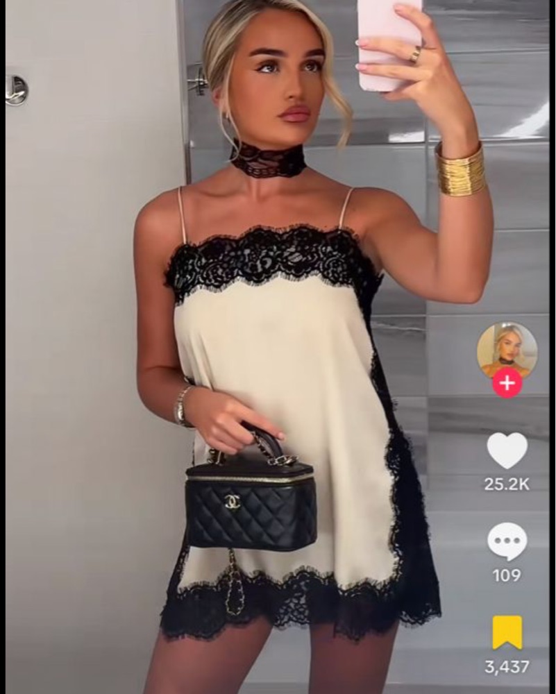 Size medium so it has more room to be scrunched love this dress so cute and can be styled so many ways!!