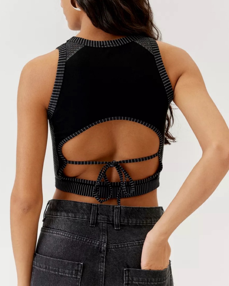 Seamless tank top iets frans… label. Features a fitted silhouette in a stretch fabrication. Sleeveless style with an open back & tie accent. Cut in a cropped fit.