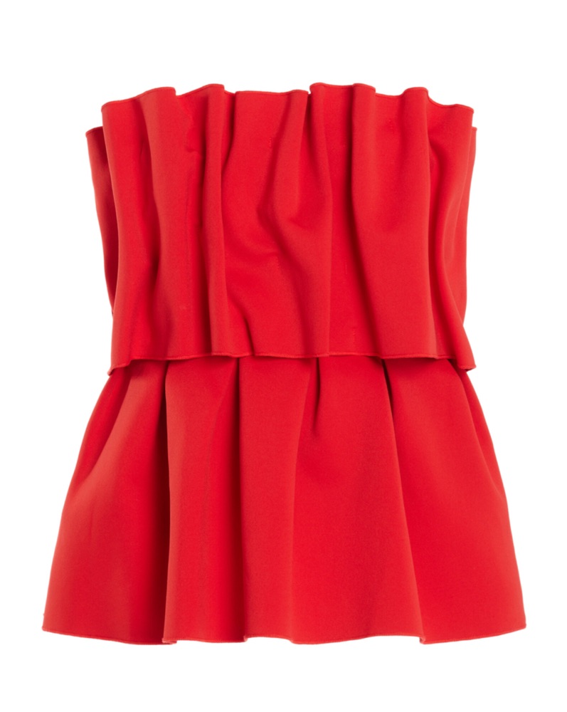 Red scrunch strapless top. Great for special occasions or going out in NYC.