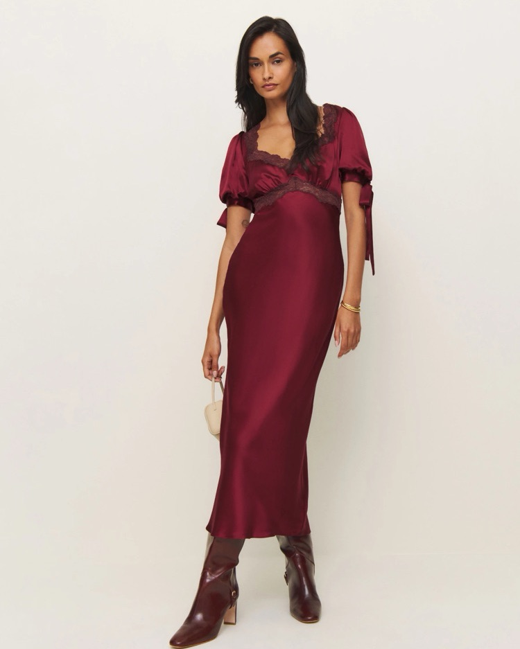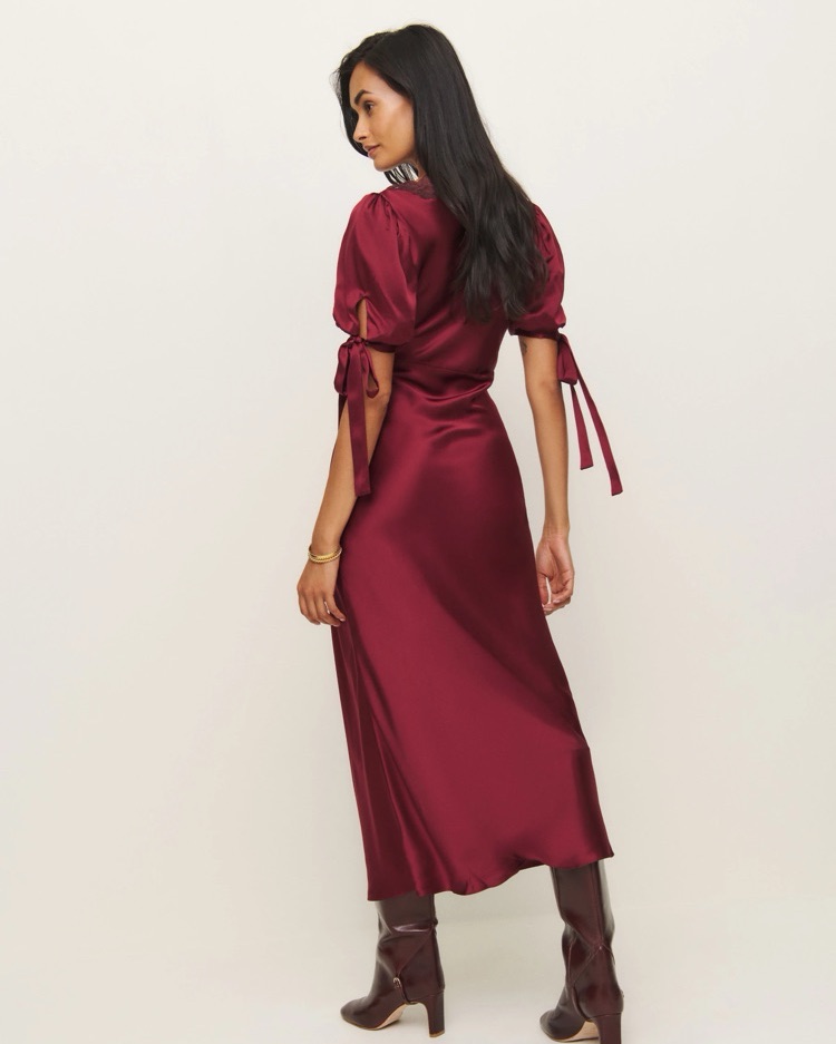 Reformation Stella Silk Dress - Crimson