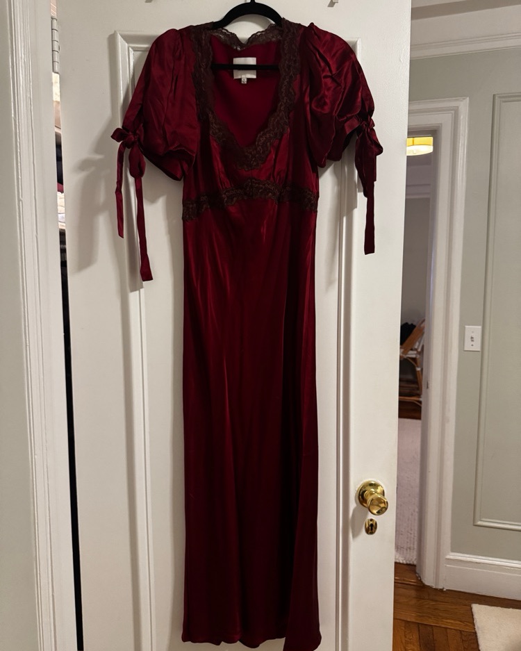 Ref x Kacey Musgraves Stella Silk Dress in Crimson Clover - dry cleaning required prior to return.