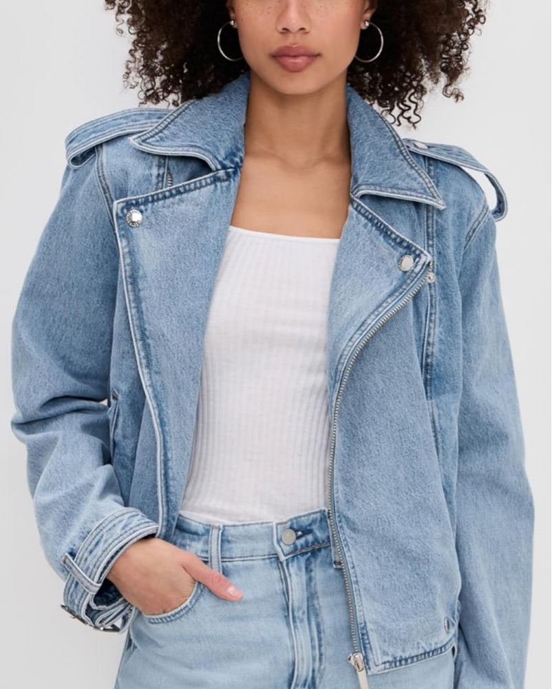 Retrofête Women's Shay Denim Jacket light wash moto jacket zip up