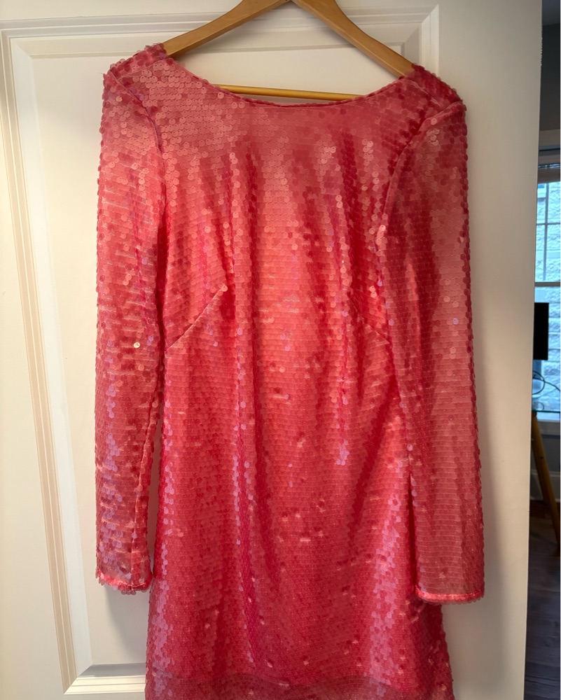Long sleeve pink sequin dress from Anthropologie. Only worn once! Great for nye or any holiday parties