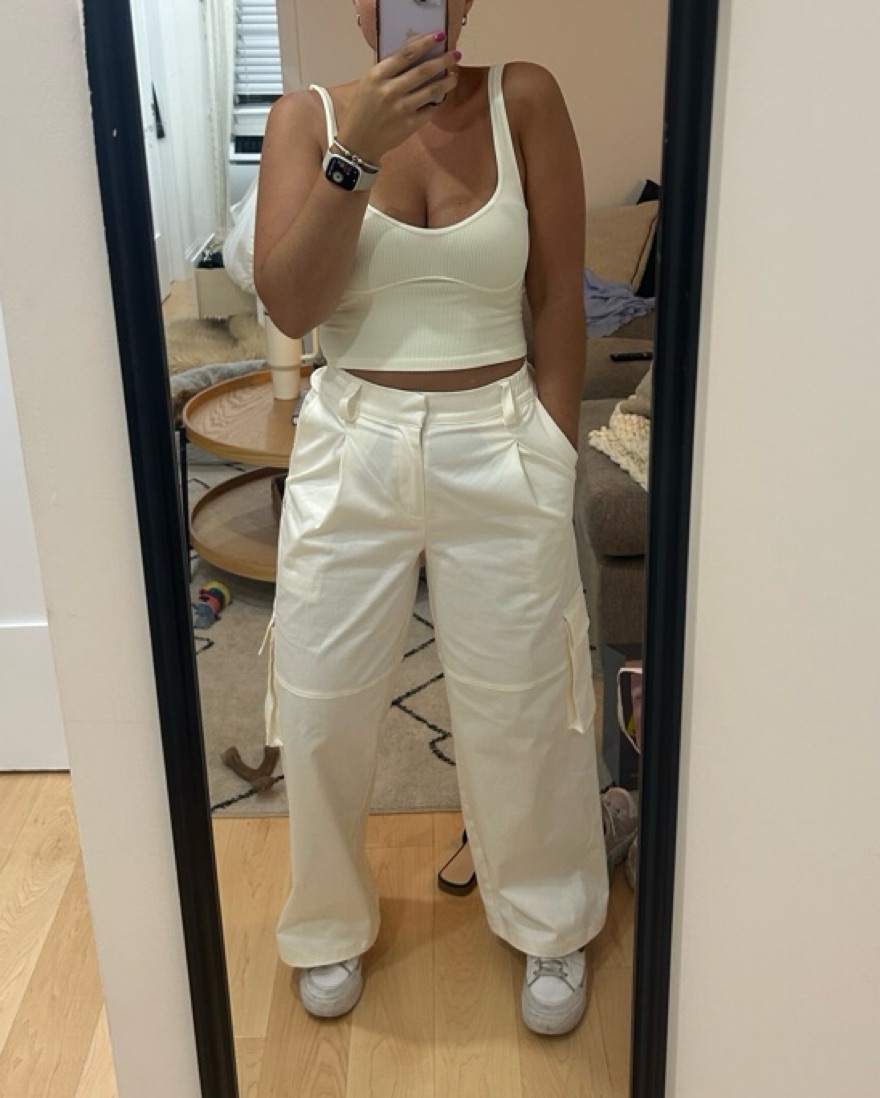 Ivory pants- Barely worn and slightly hemmed (im 5’2” and they are still a little long). Price includes dry cleaning!