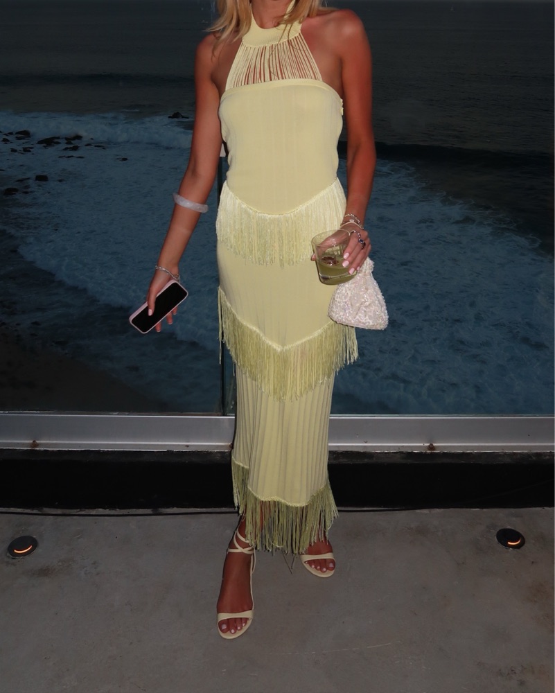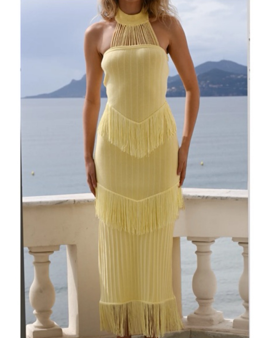 Yellow Halter Fringe Dress
