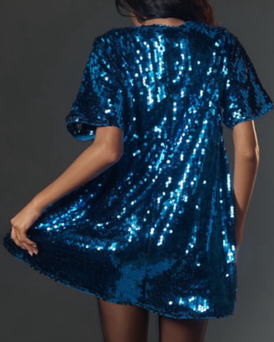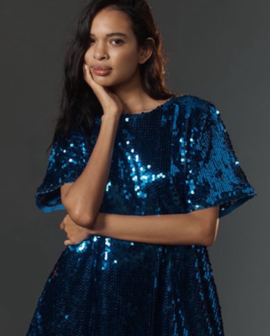 Anthropologie Blue Sequin Mini Dress by Maeve - Pickle