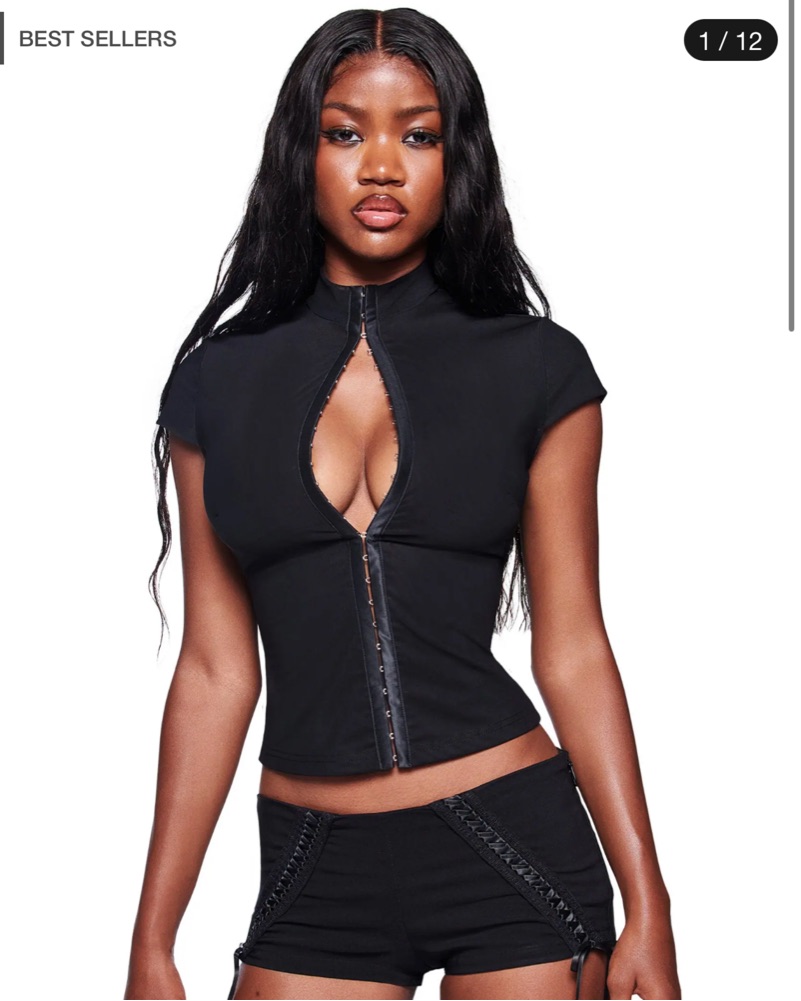 This figure-hugging crop top is perfect for a night out on the town. The high neckline and zip-up front add a touch of edge to this sultry piece.