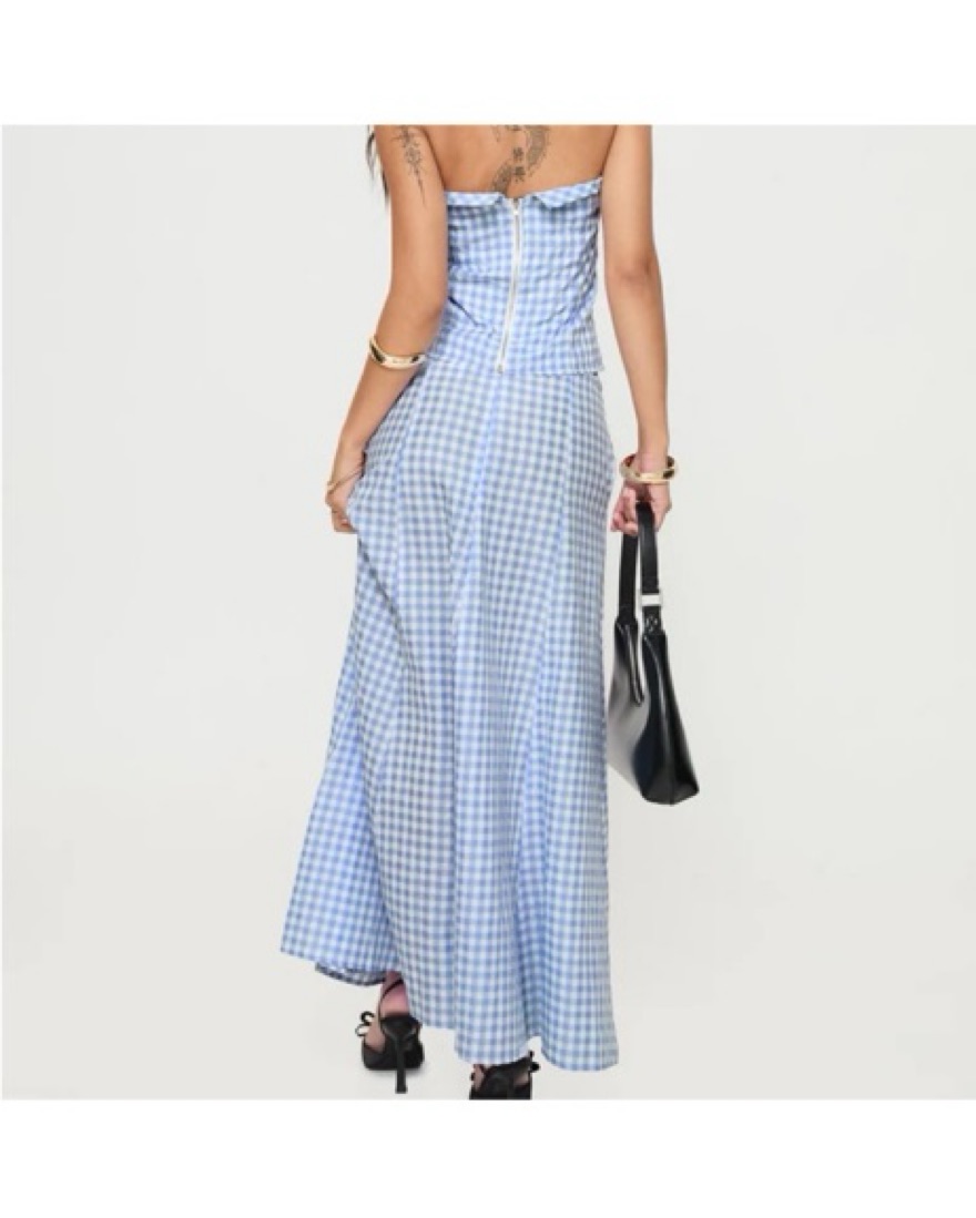 Carmino: Blue Picnic Pattern the top has a zipper in the back, the skirt has pockets and ties! Super cute and fun for the spring/ summer time