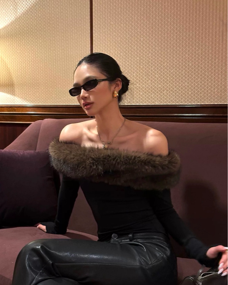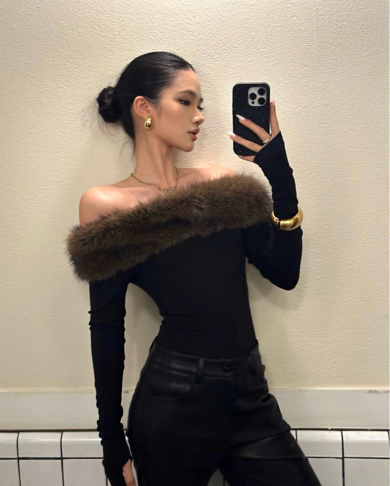 Faux Fur Off Shoulder Top by Boutique - Pickle