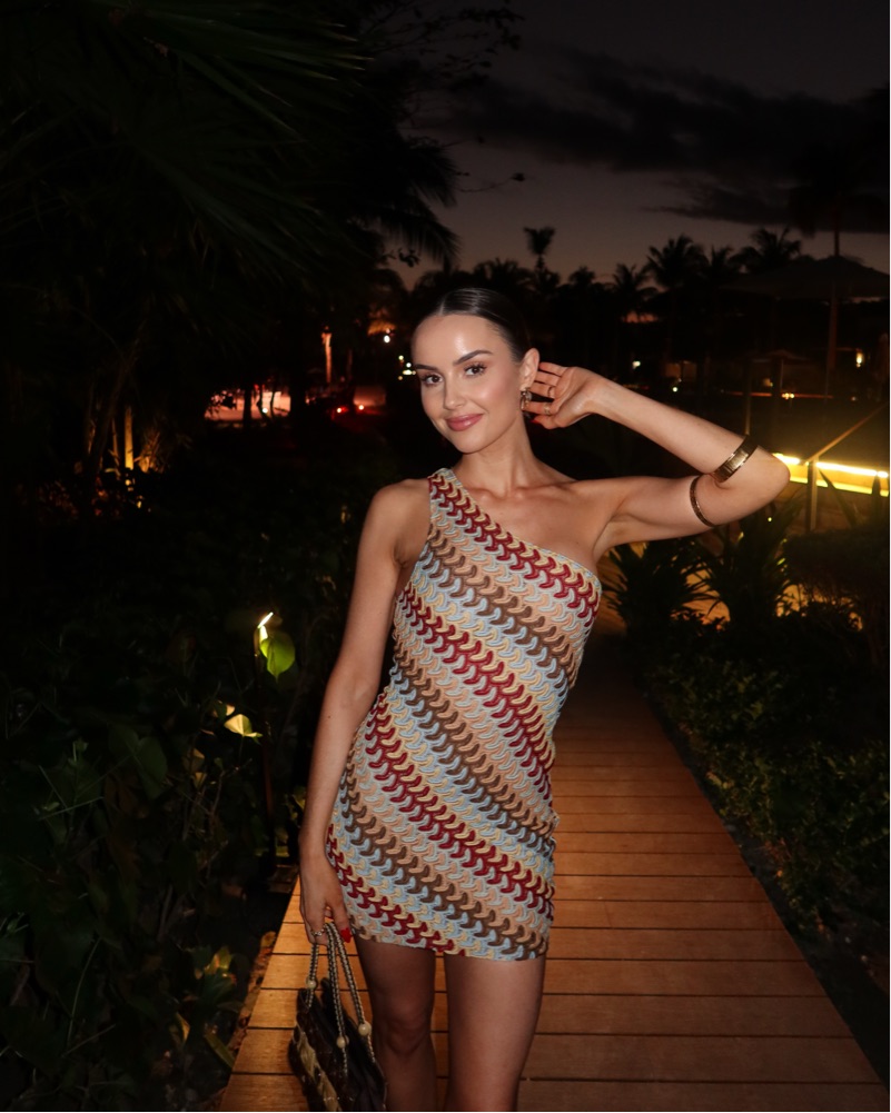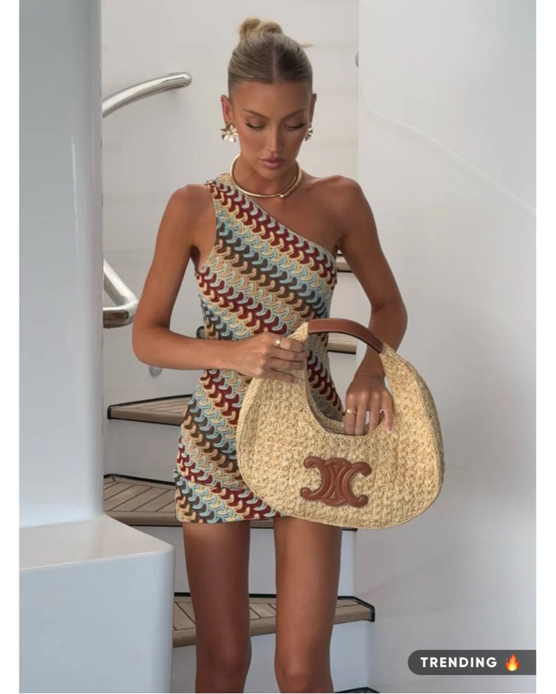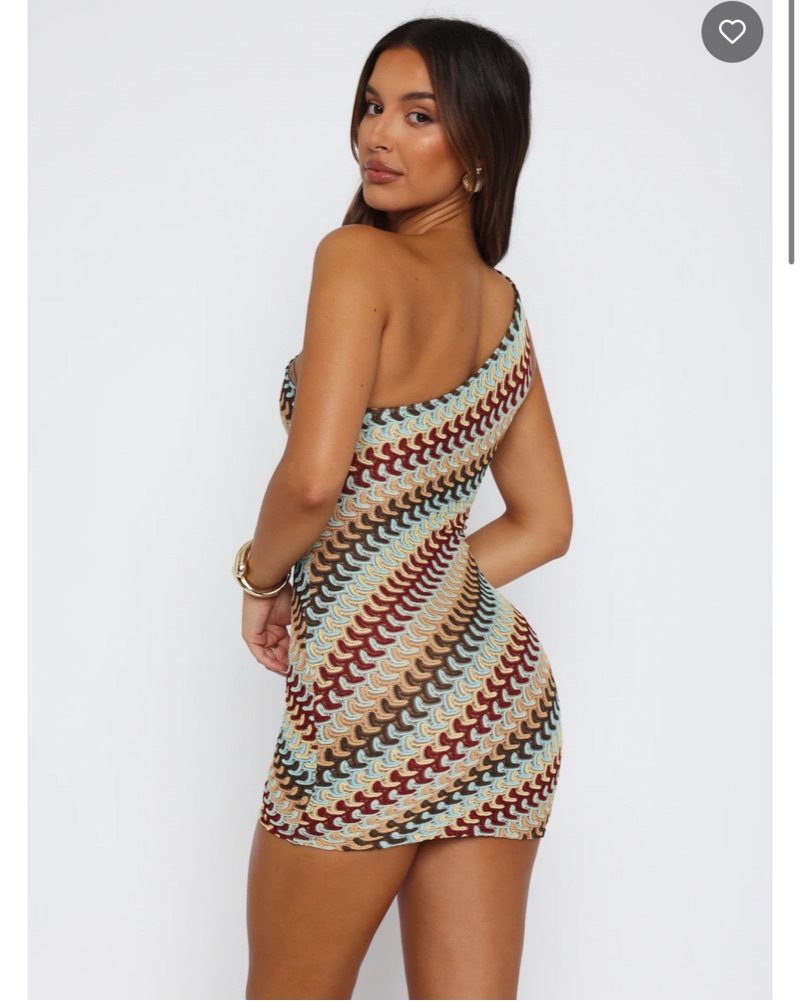 Made for summer days. The Go Loco Mini Dress Autumn features a one shoulder design, knitted fabric design, mesh lined fabric, hidden side zipper with hook & eye, hugging silhouette design, mini length and super cute colour way.
