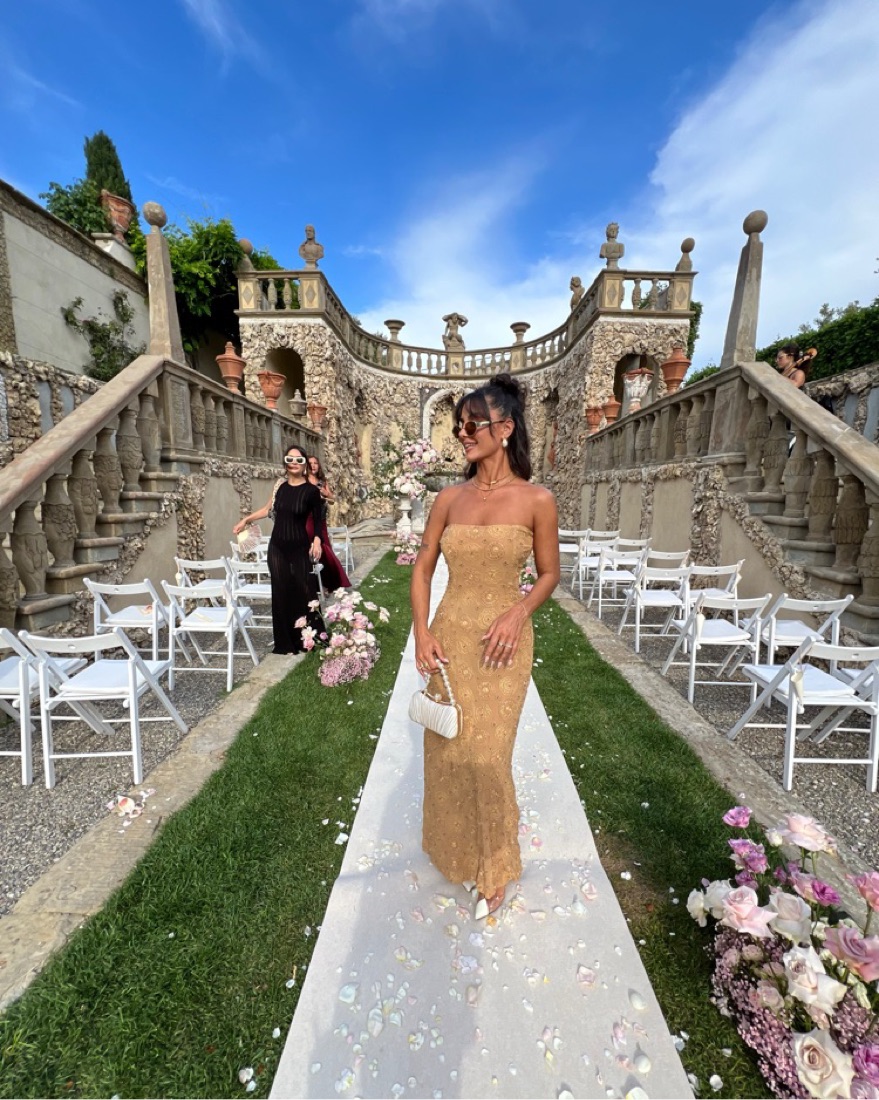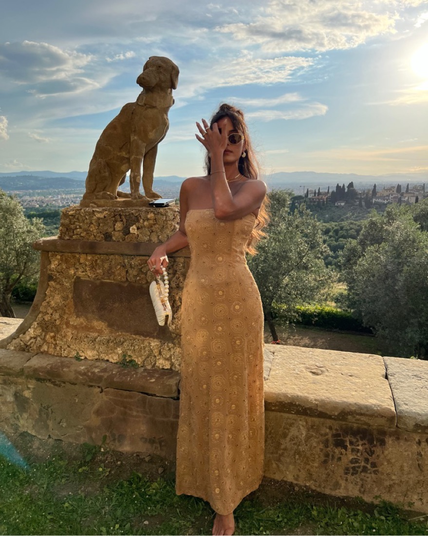 Stunning strapless beaded gown. Lightweight. Fragile beading. There is a built in corset - i suggest buying another to wear under to achieve the more snatched look. size fits more like a 4 in the body but the top is built for a larger chest. Im a b and its big on me. Have 3 sets of detachable sleeve