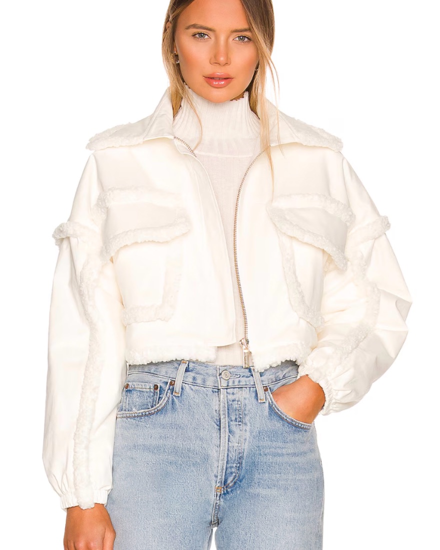 Revolve Selmacilek Cropped Teddy Jacket by Revolve - Pickle