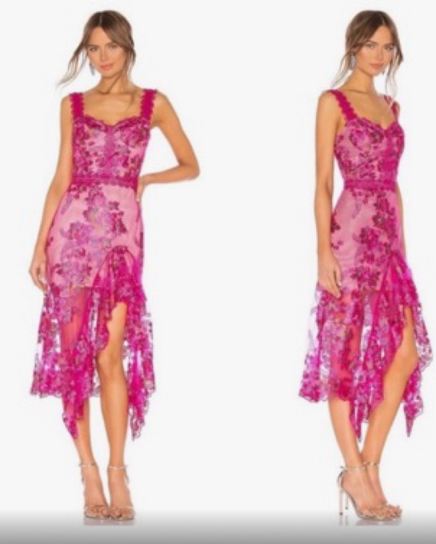 Beautiful embroidered lace fuchsia dress. Details are absolutely stunning. Slight rip at very bottom, but you can’t even see it